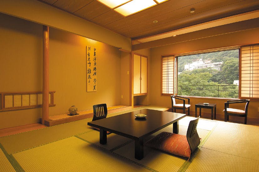 鬼怒川の四季を愉しみながら心癒される客室です。 レトロな掘りごたつをモダンにしつらえた寛ぎのスペース付き客室。・渓谷側和室10畳+広縁+掘りごたつ (昭和52年完成 ・平成24年改装)