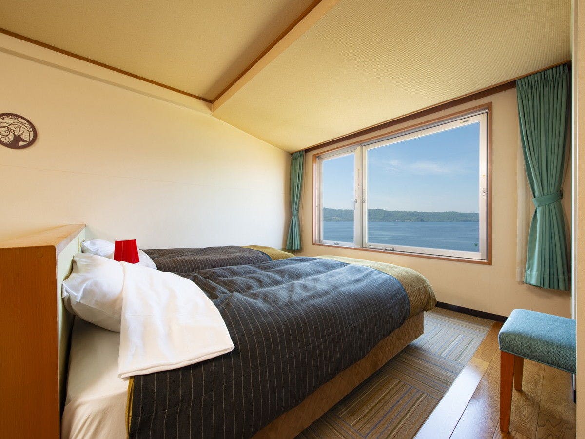 洞爺湖を望む窓辺にベッドを配した部屋と6.5畳の団欒スペースを配した部屋の2タイプあります。