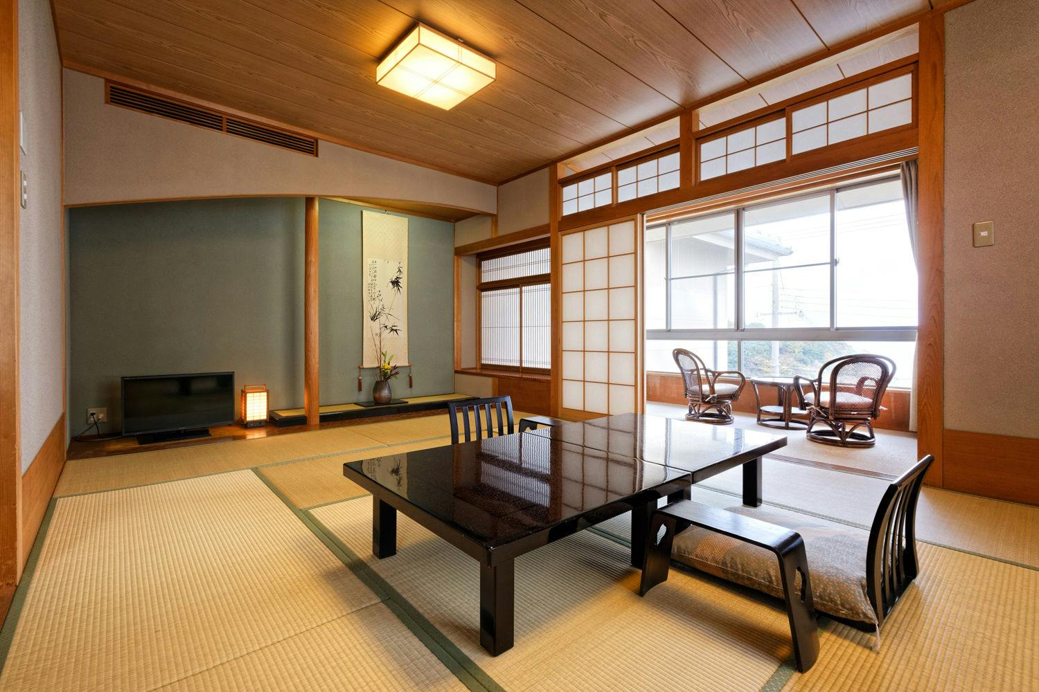 落ち着きある和室でゆったりと寛ぎ、洋室のベッド(ツイン)でお休みいただける和洋室のお部屋です。 洋室の大きな窓から瀬戸内海に昇る絶景の朝日をご覧いただけます。トイレ付/無料Wi-Fi/加湿器一体型空気清浄機