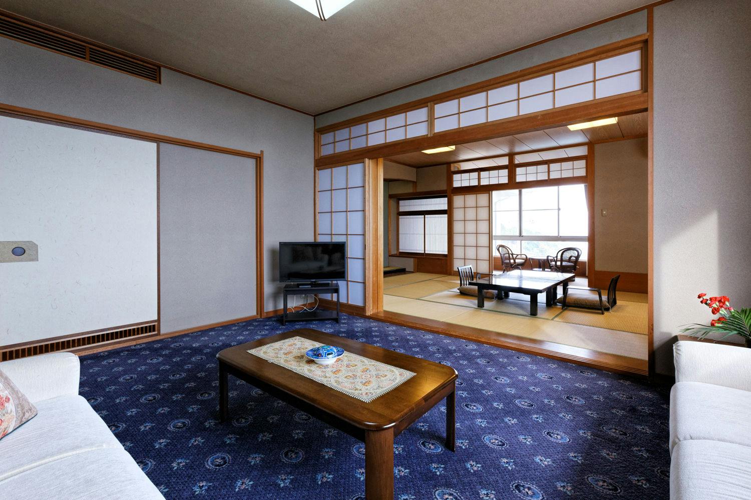 3名様以上でご利用いただける二間続きの広々としたお部屋です。 ゆったりとした間取りで大人数でものんびり快適にお過ごしいただけます。トイレ付/加湿器一体型空気清浄機/無料Wi-Fi