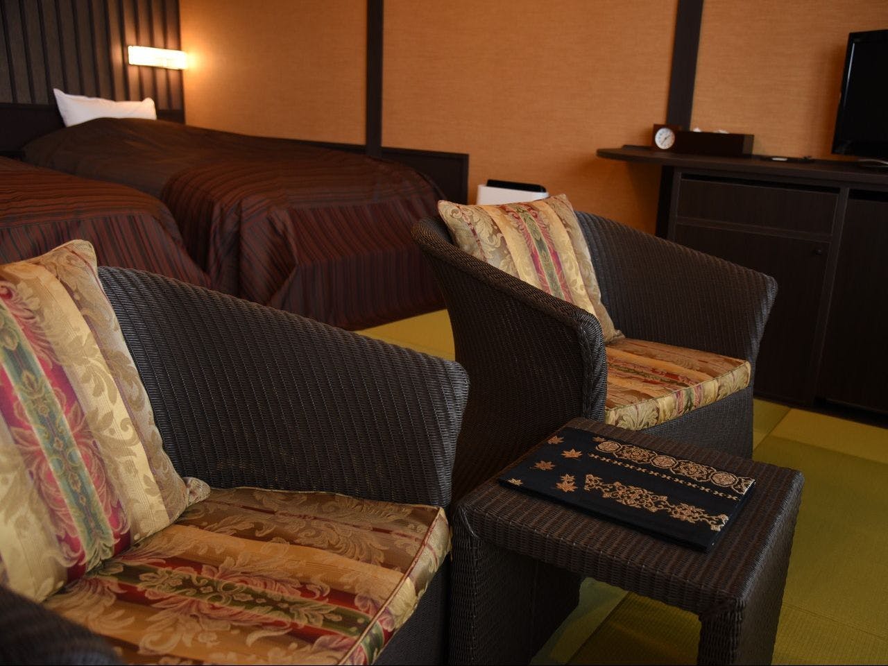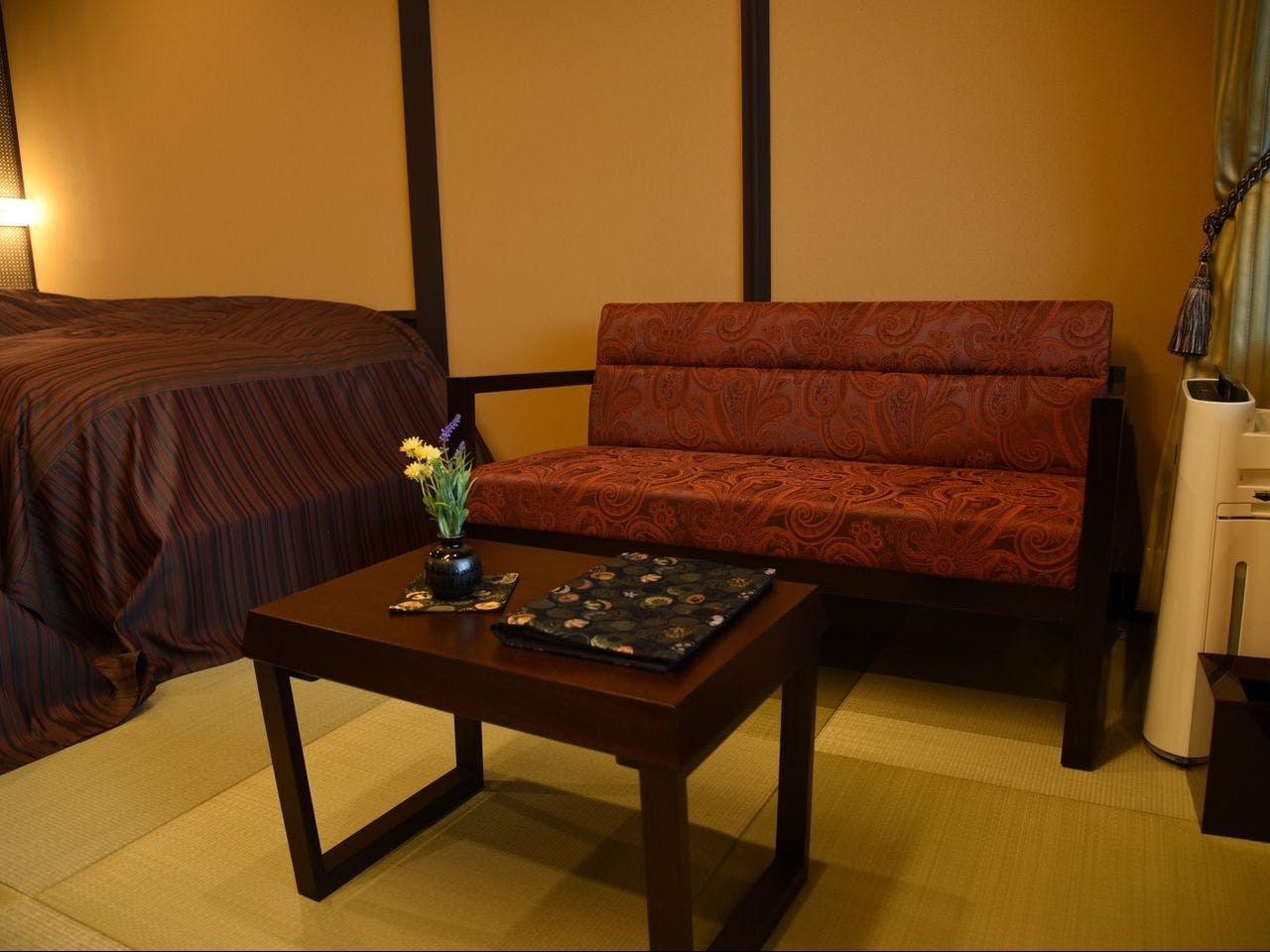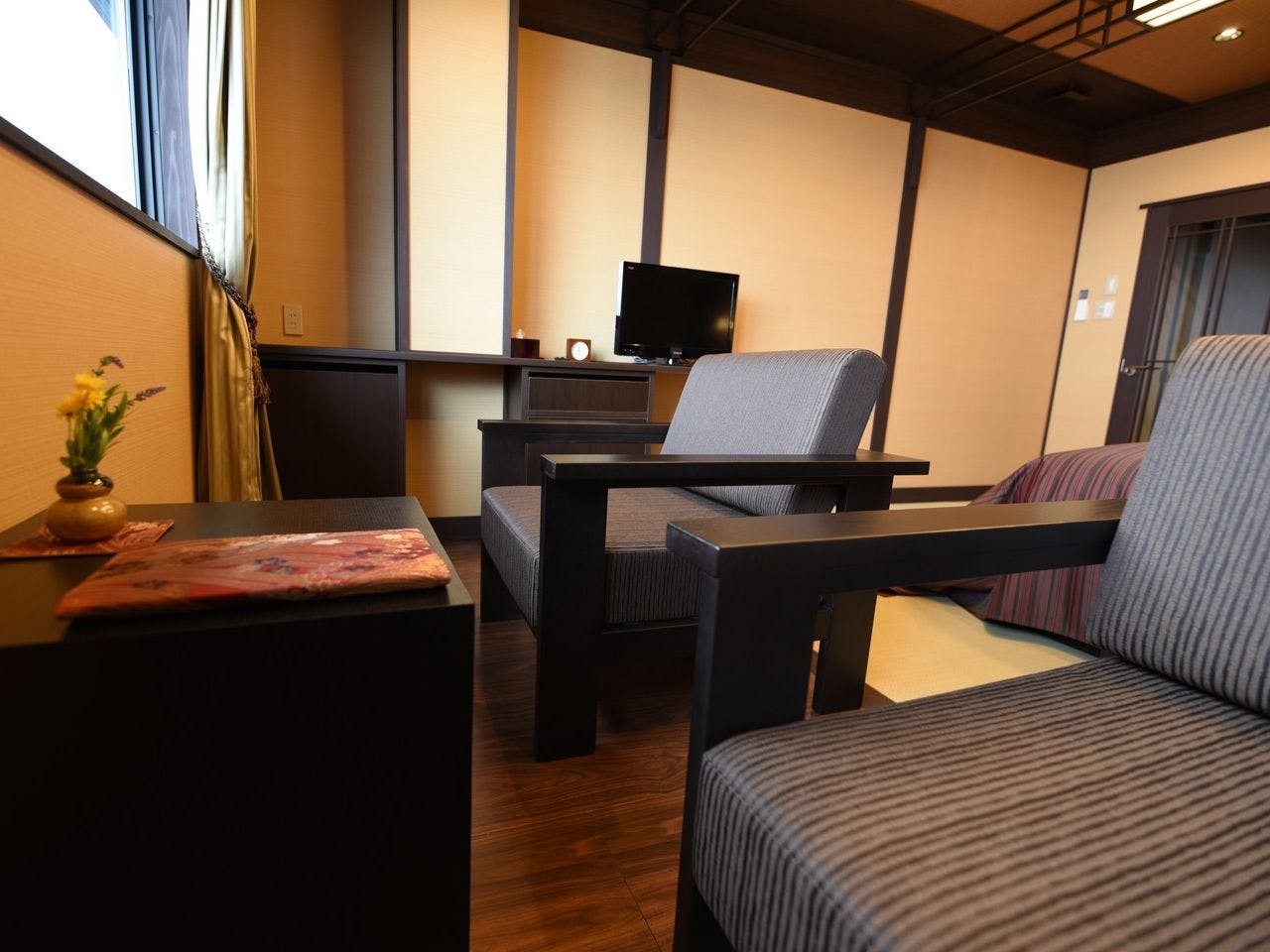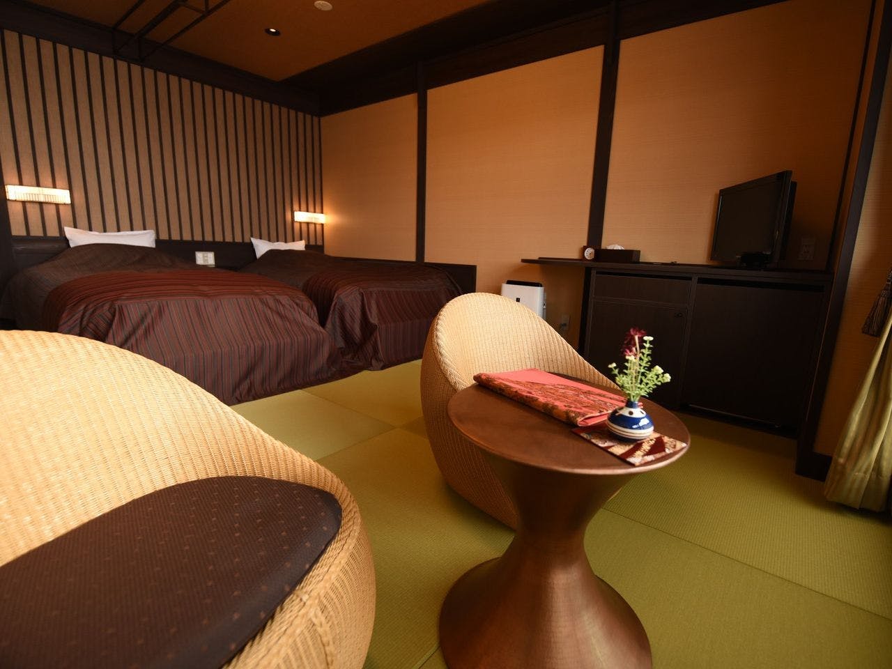 個室風呂付、エアウィーヴ+シモンズベッド(縦200cm×横110cm) 2台、ケトル、ウォシュレット付きトイレ、冷暖房付、冷蔵庫・テレビ、無料LAN