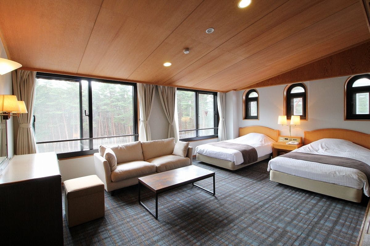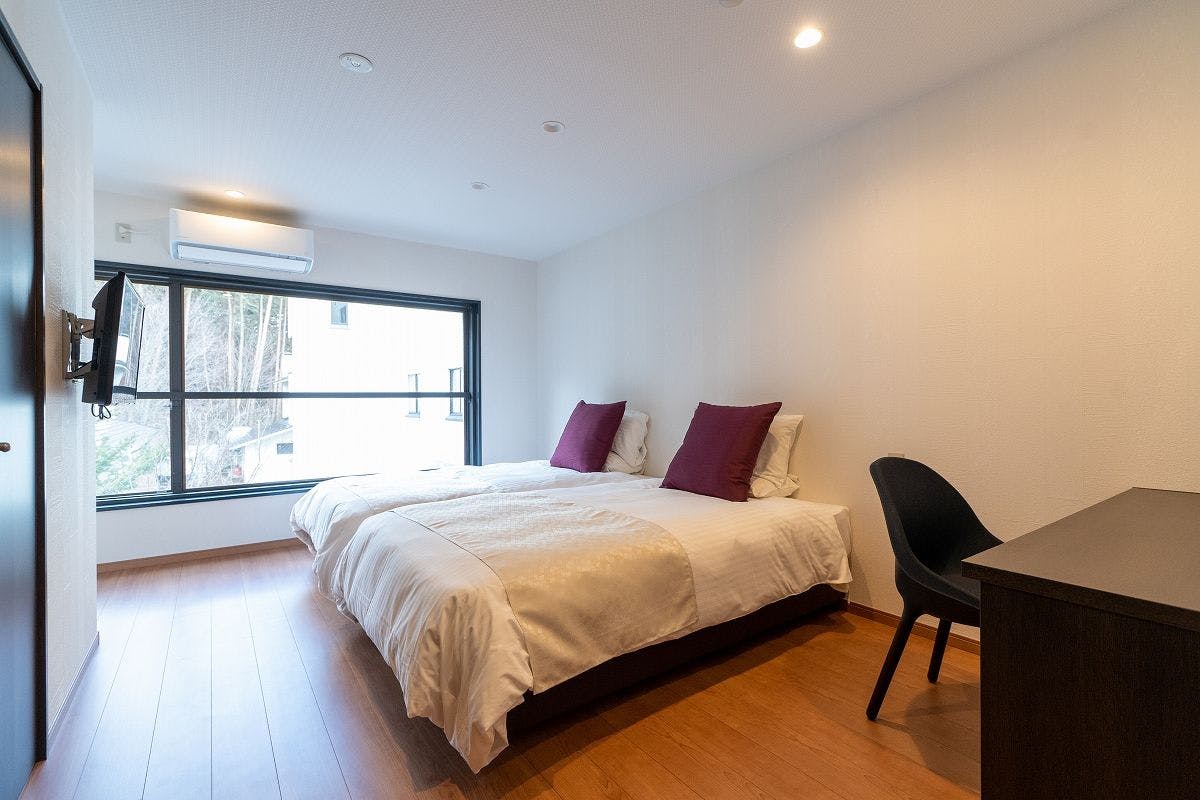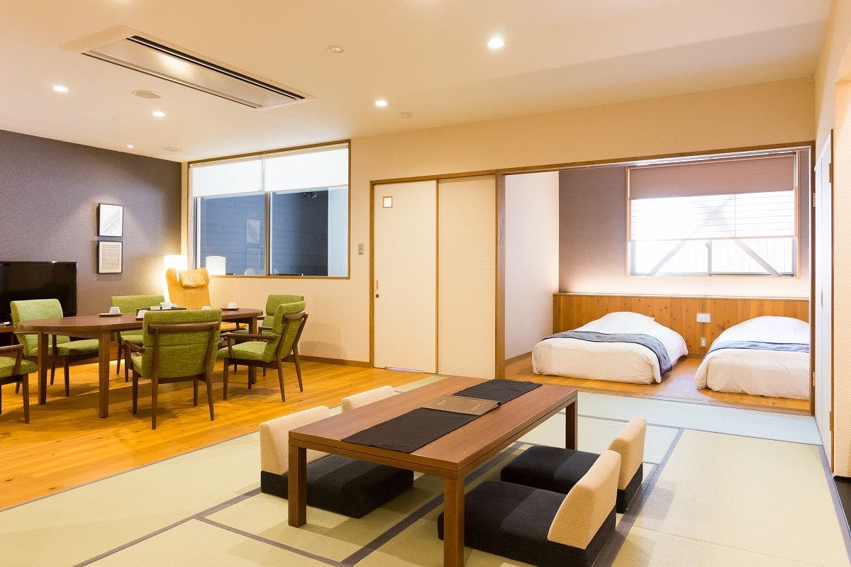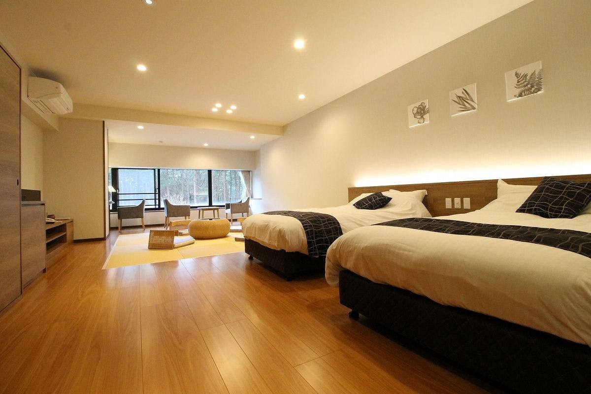 ■ ベッドルーム2部屋(ベッド各2台)+和室8畳と広々ダイニング+温泉檜風呂