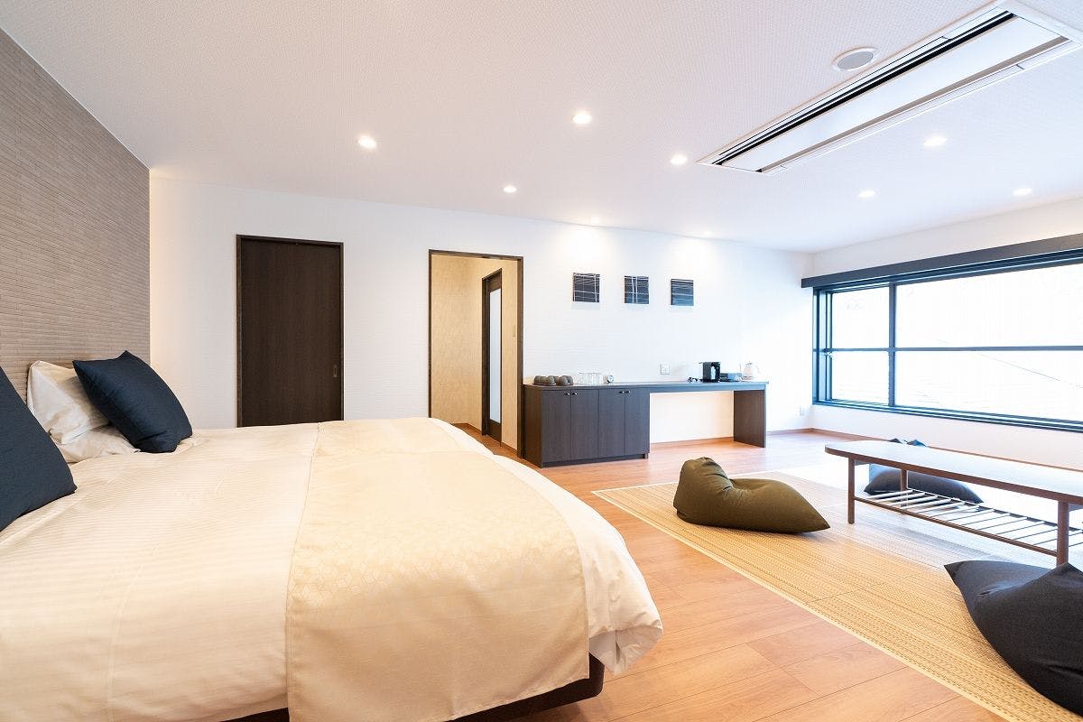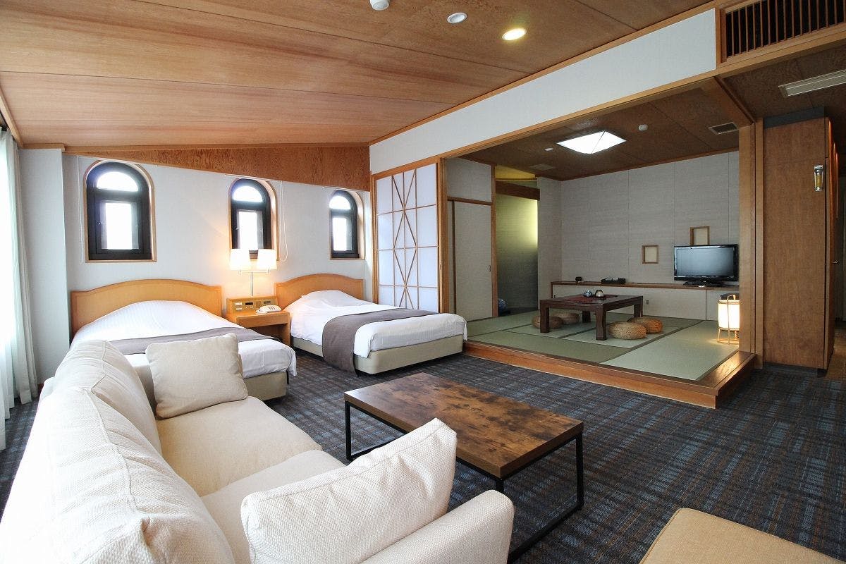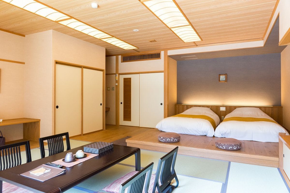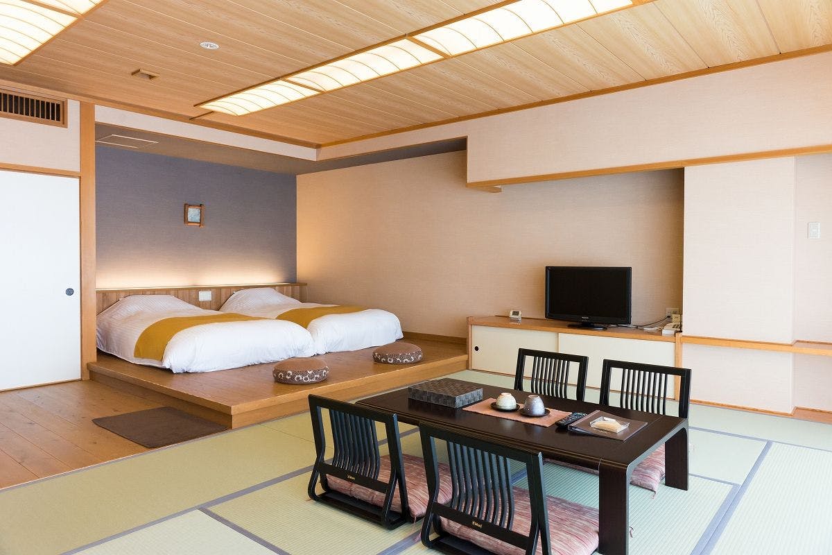 開放感のあるお部屋はベッドと畳、和と洋の過ごしやすさを追求した客室です