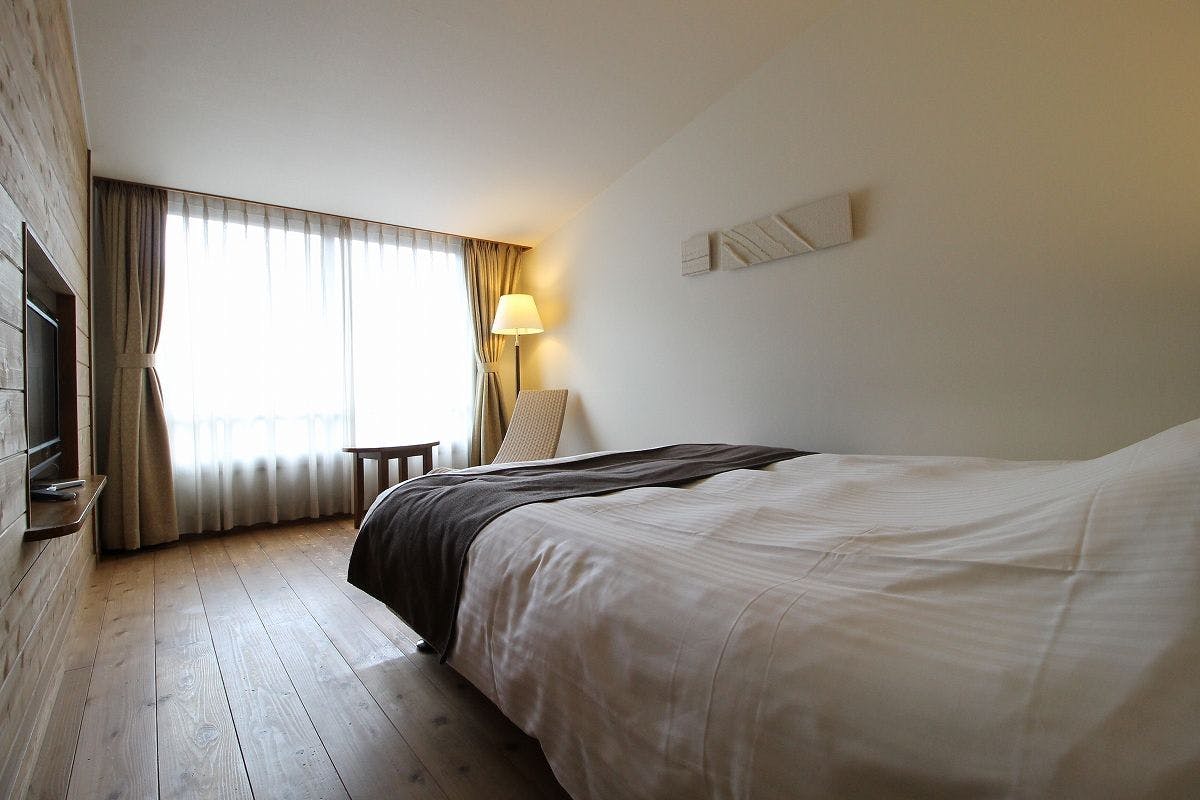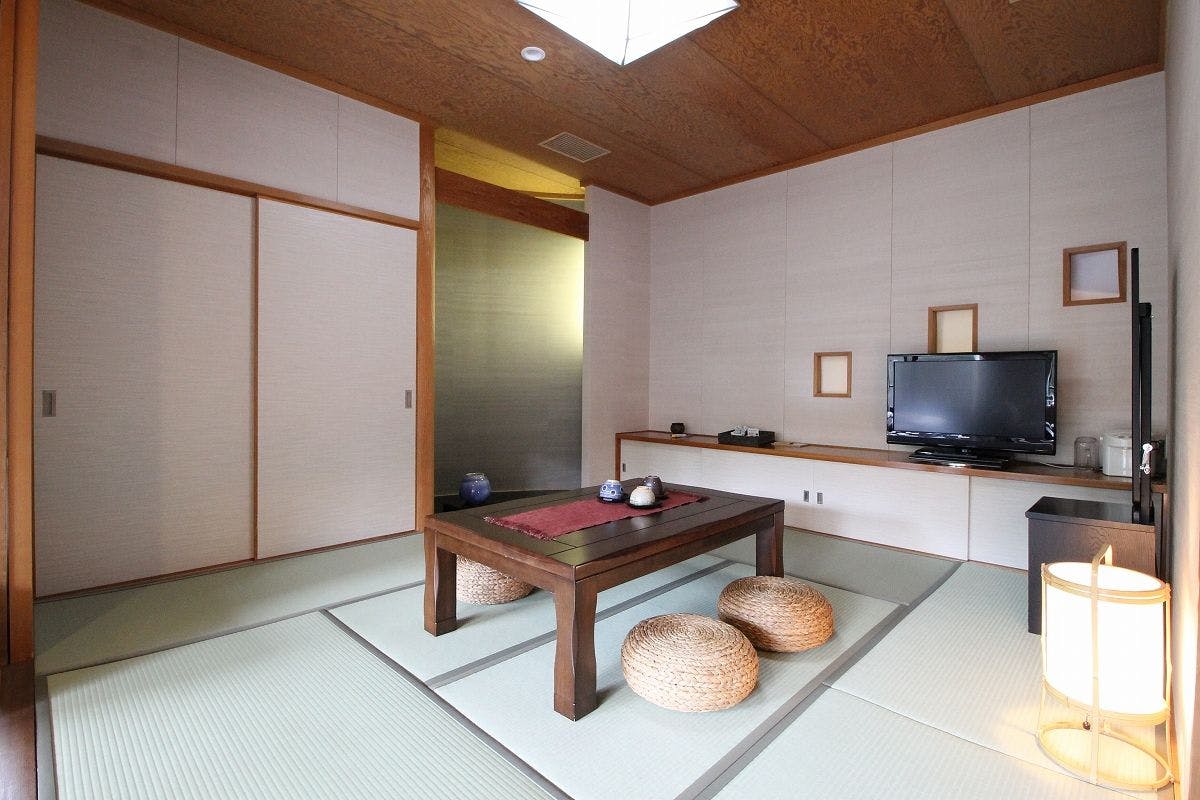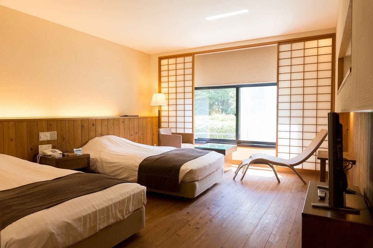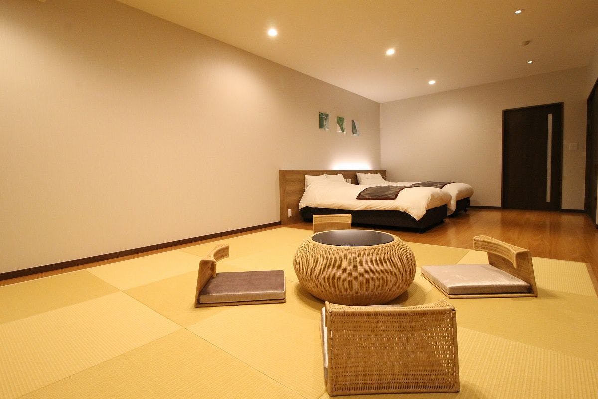 開放感のあるお部屋はベッドと畳、和と洋の過ごしやすさを追求した客室です
