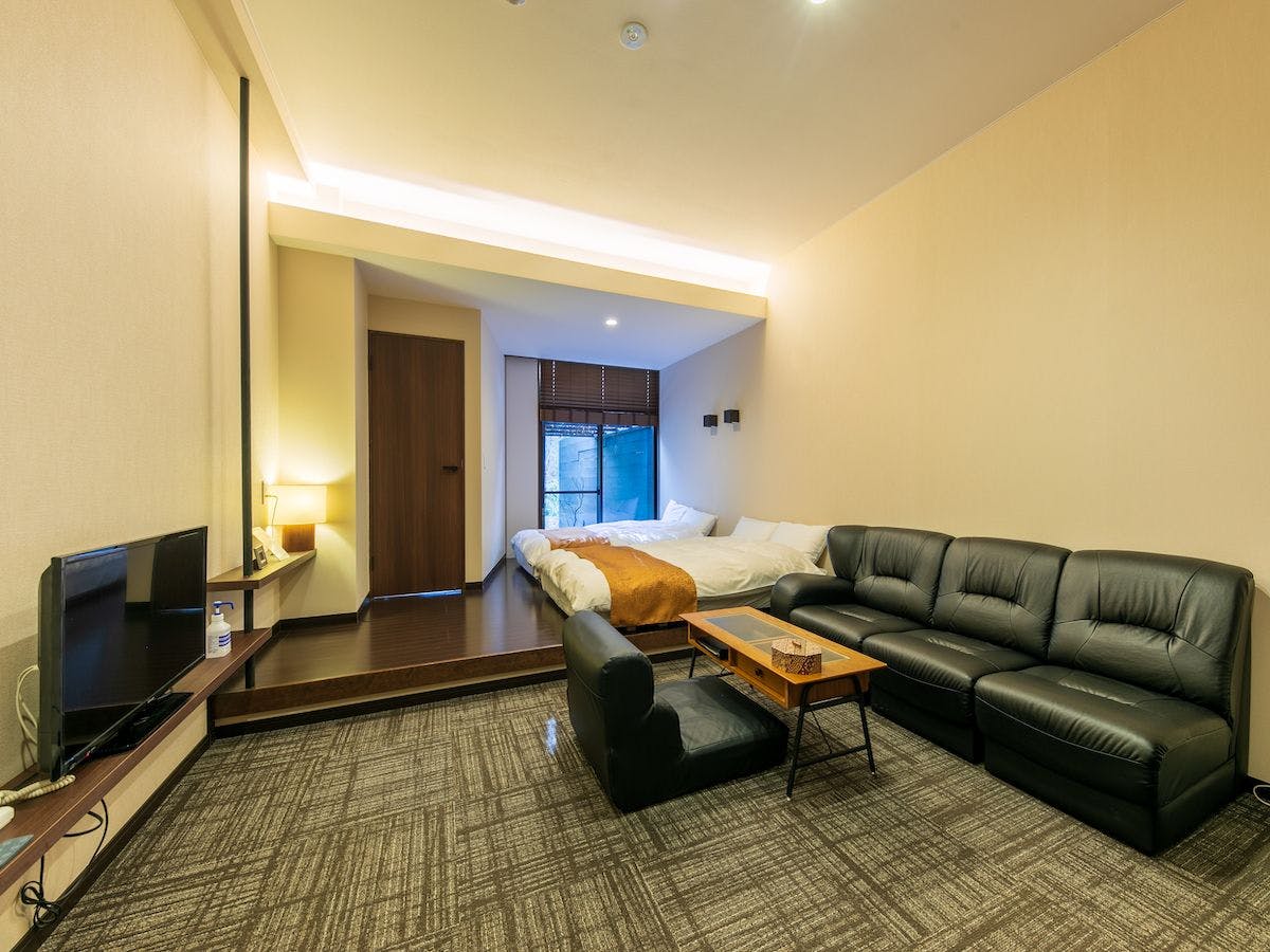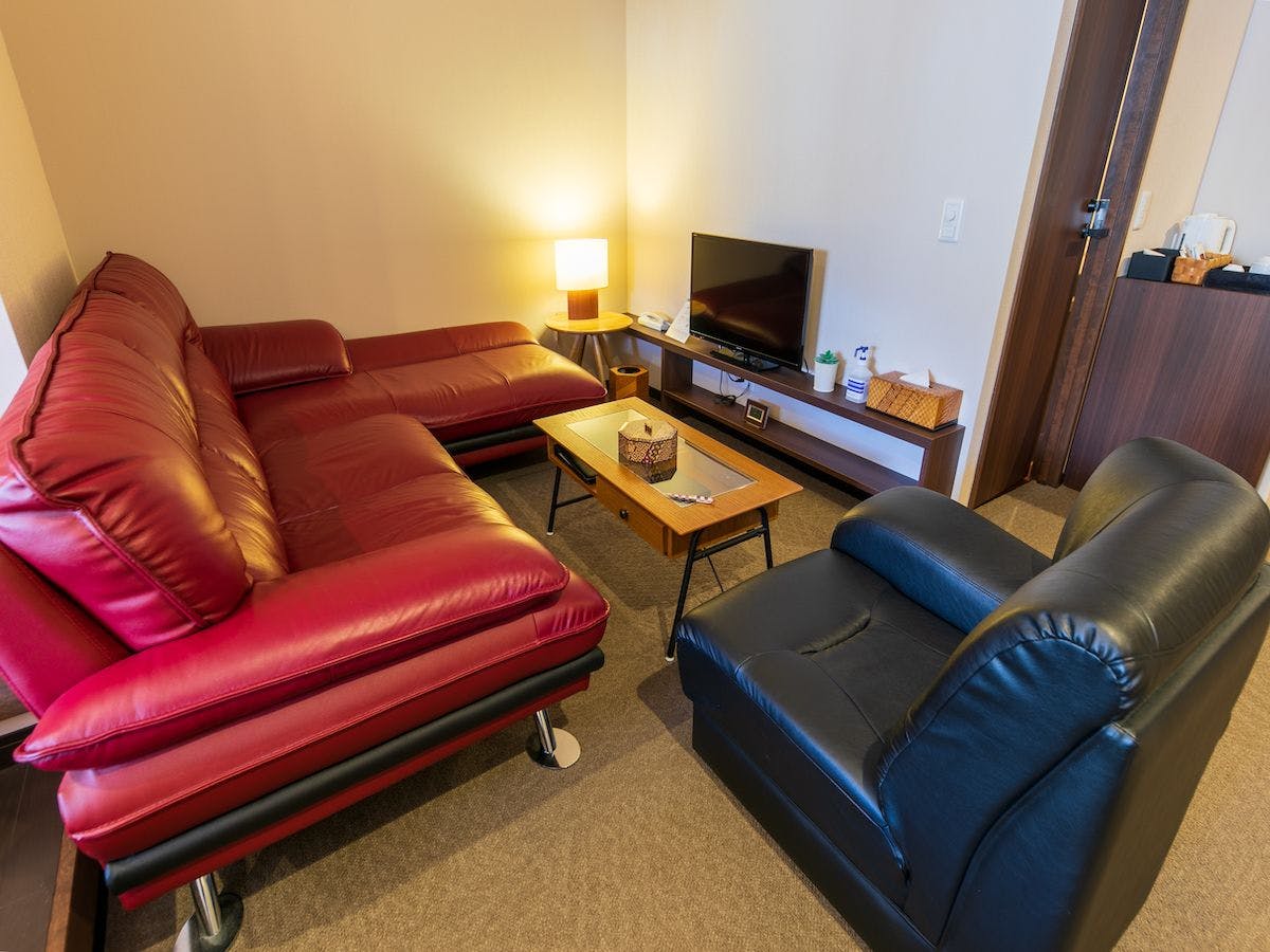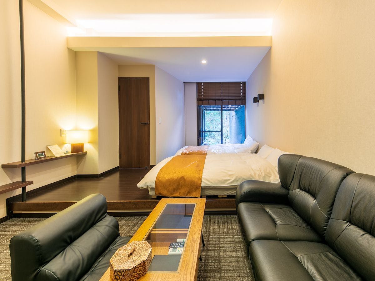 離れ特別室の次に広いタイプのお部屋になります。フートンタイプのベットをツインでご用意しており、客室内に和室もございます。心地よいソファーは4名様が座れるソファーとなっております。当客室をご利用のお客様は、大浴場を独占貸切で贅沢にご利用いただけます。箱根ならではのお茶菓子を準備しております。
