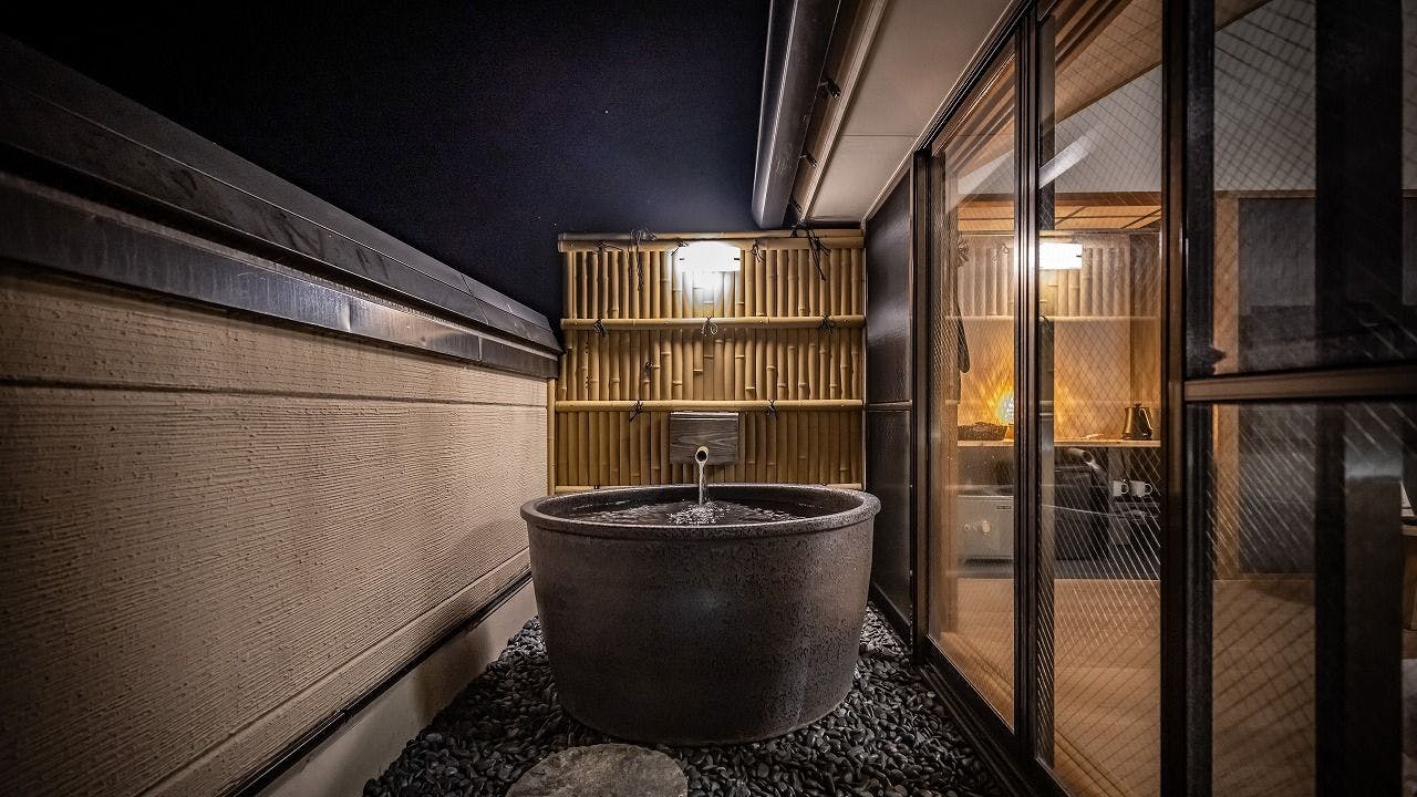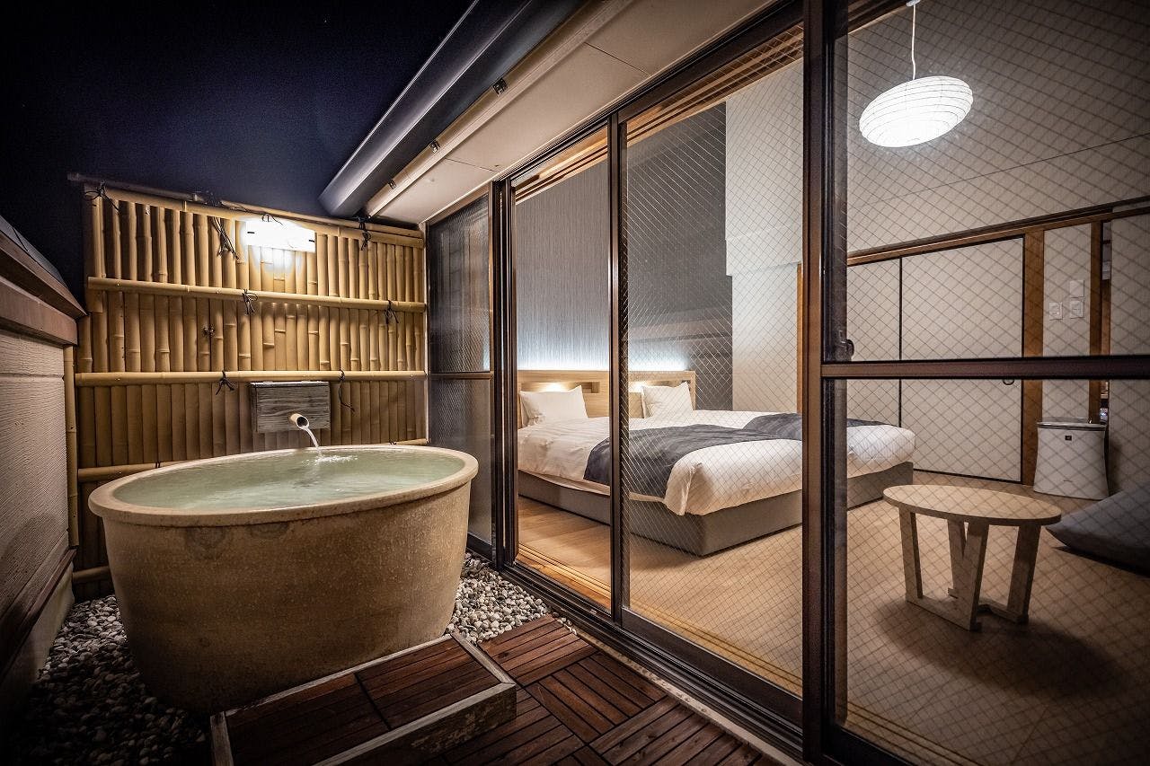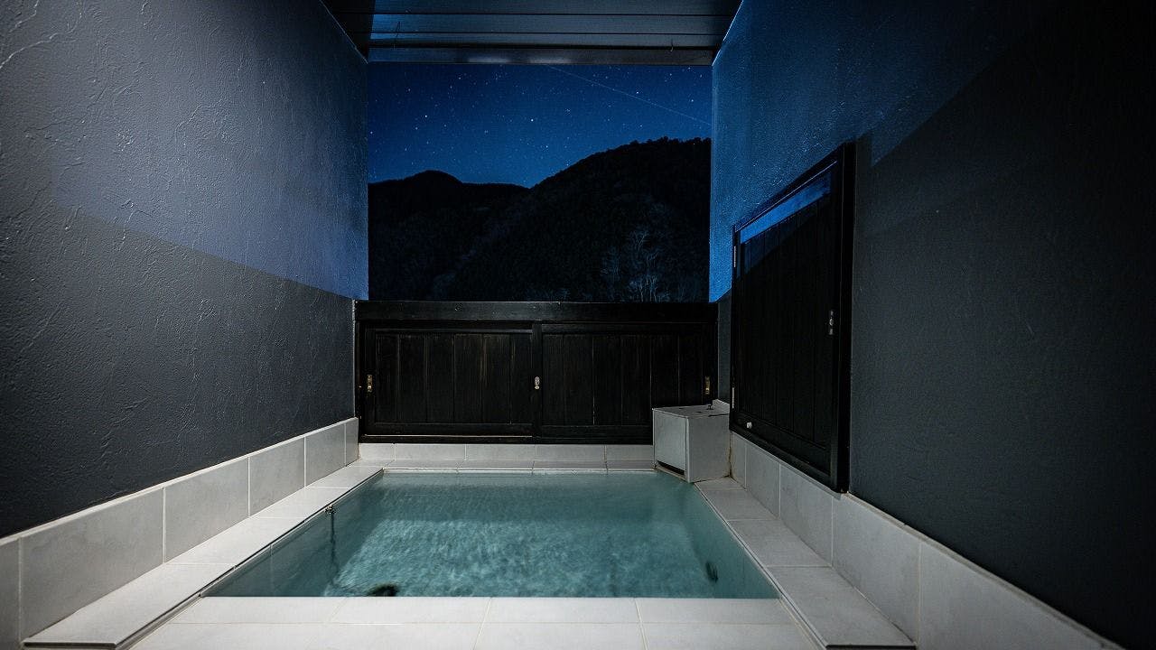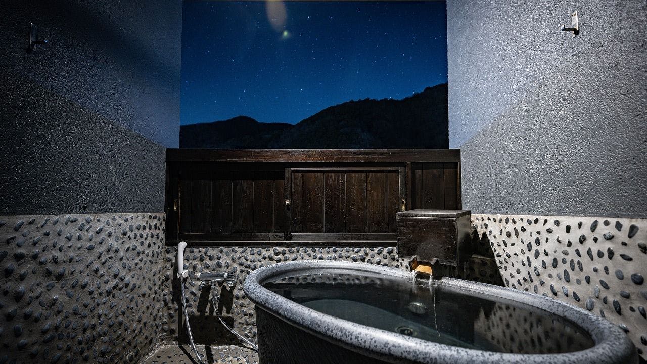 客室に備え付けられた露天風呂からは星空を独り占め。