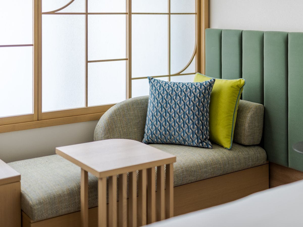 やわらかな障子や「木」など京都らしさを取り入れたインテリア。バスタブ無し、シャワーブースのみ。独立型シャワーブースを装備。※歯ブラシはご希望の方に環境に優しいヘッド交換式のものをフロントでご用意。※眺望はお楽しみいただけません。