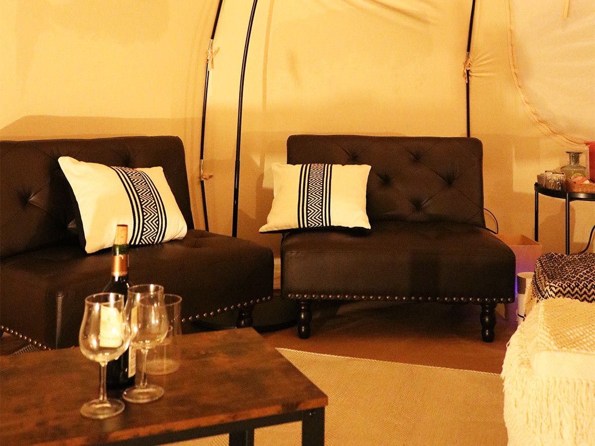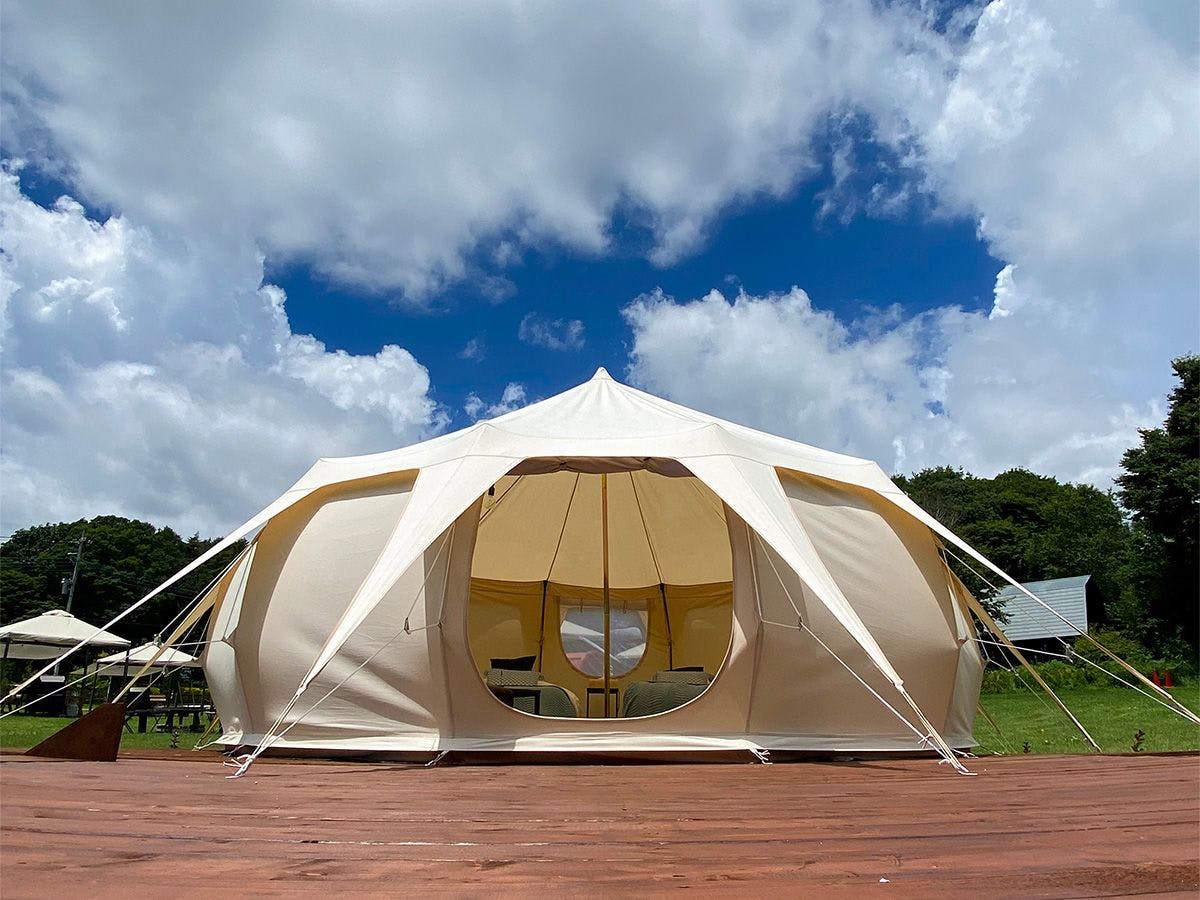 非日常を追求したベルタイプテントを採用。