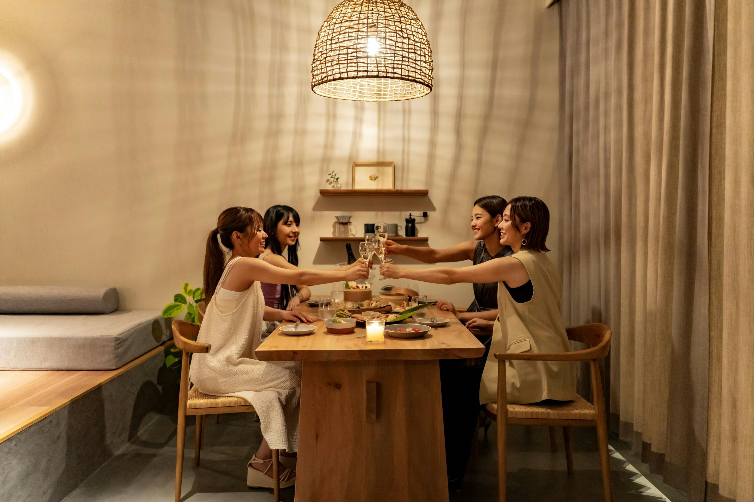 上質なインテリアと、窓辺には特徴的なソファを設置しました。ドリンク片手にゆっくりと語り合ったり、おしゃれな写真を撮ってみたりしながらお過ごしいただけます。