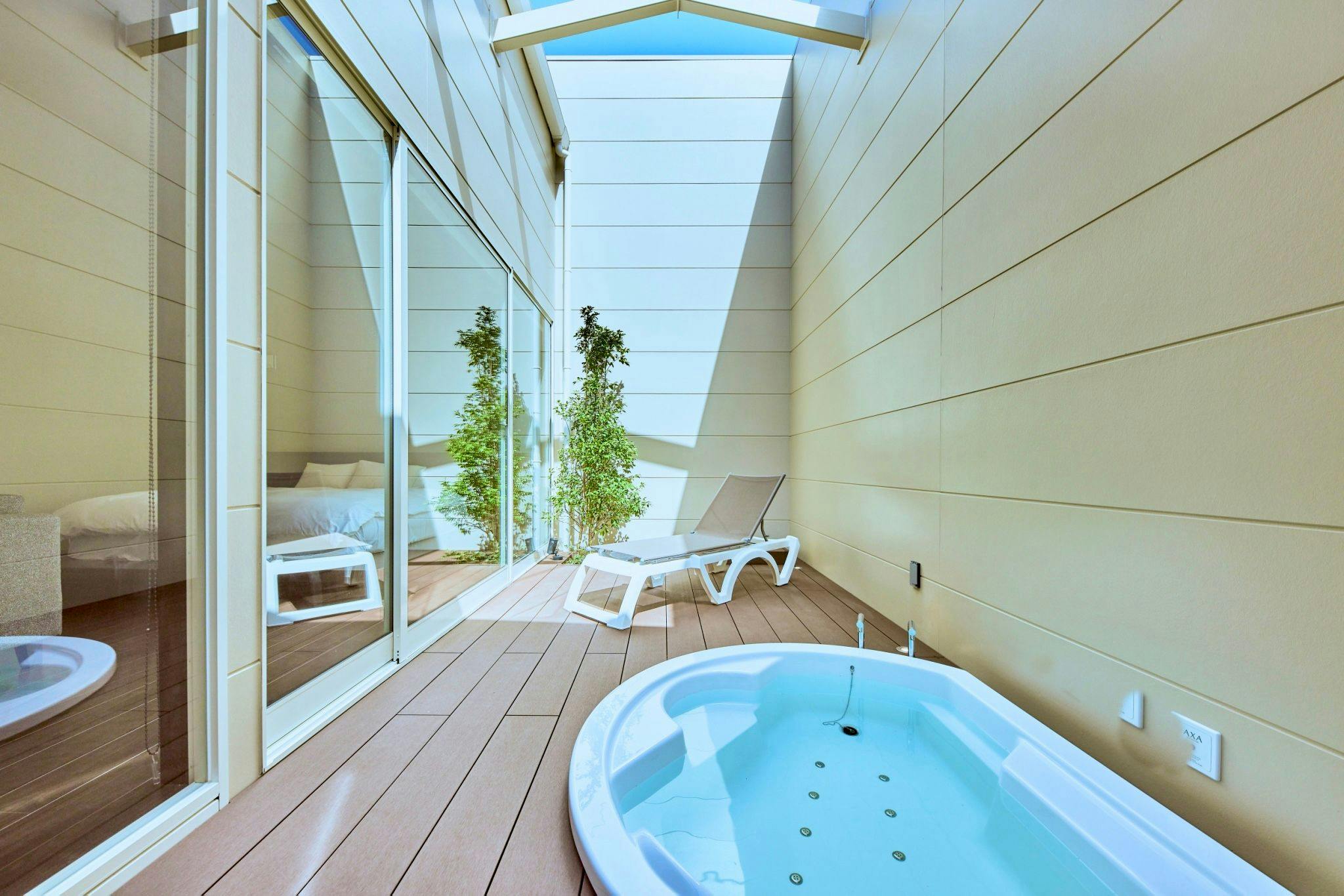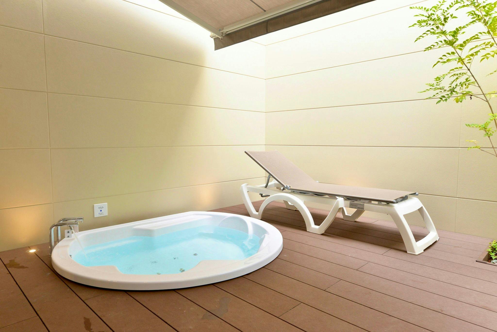 ※露天風呂には自動開閉式のテント屋根を設えておりますので、雨天時だけでなく日差しや紫外線の強い日にもご利用ください。