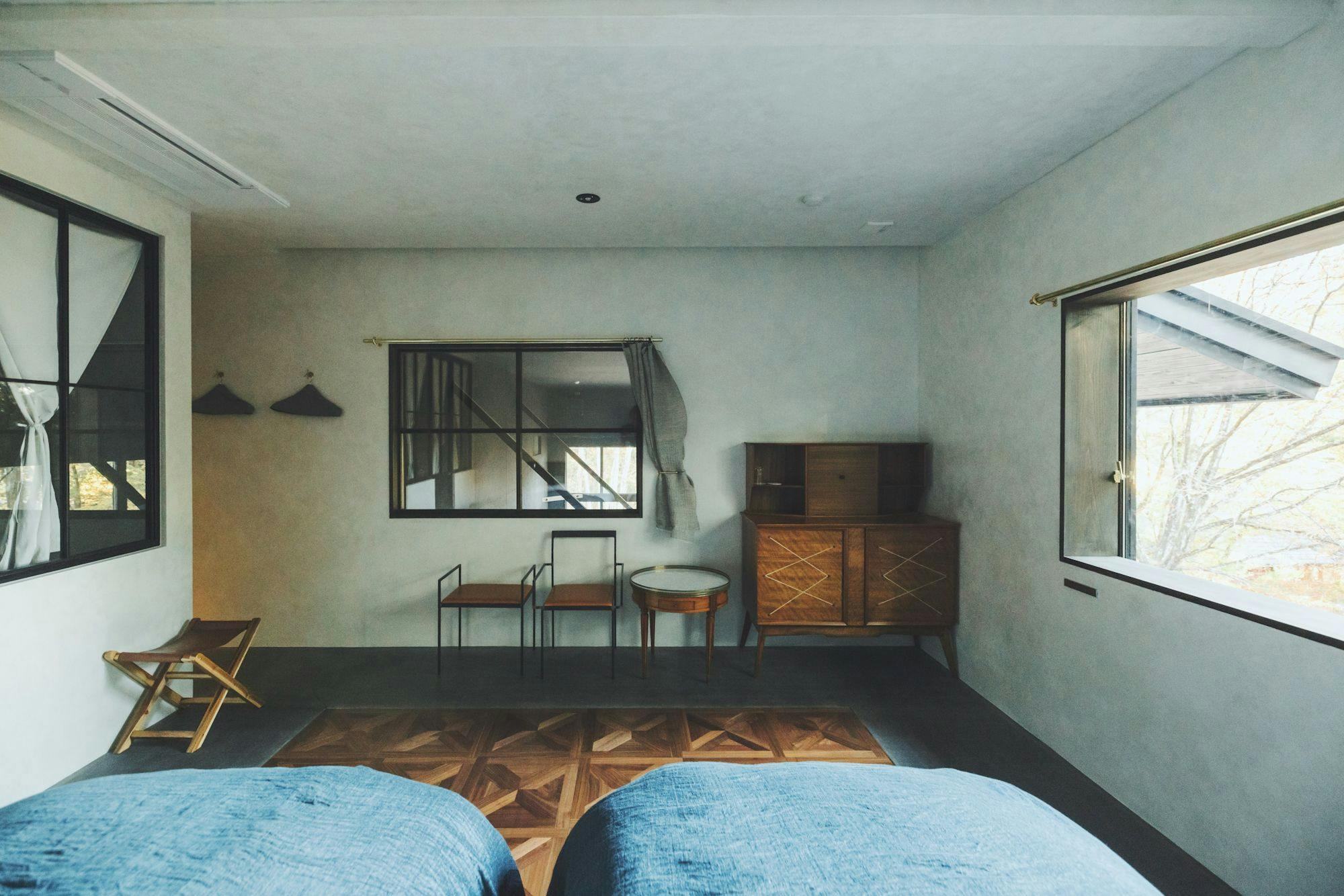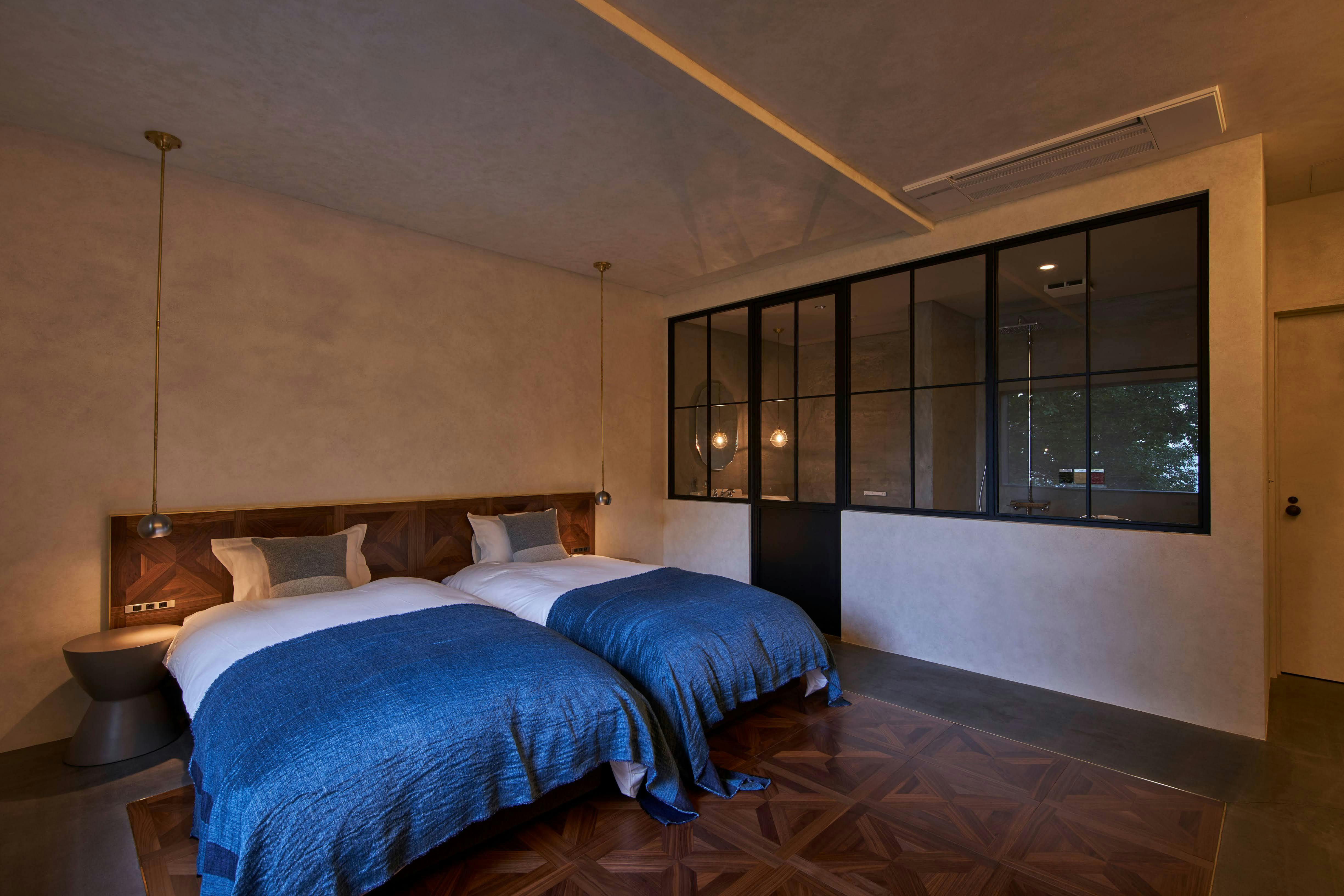 特徴は何と言っても24時間醸造所を臨むということ。まるでニューヨーク、SOHOの屋根裏部屋から工場を覗いているような気持ちになれるお部屋。先進的なイメージの赤、朱色から名前をとりました。猫足のバスタブに浸かりながら窓の外からの景色もお楽しみいただけます。