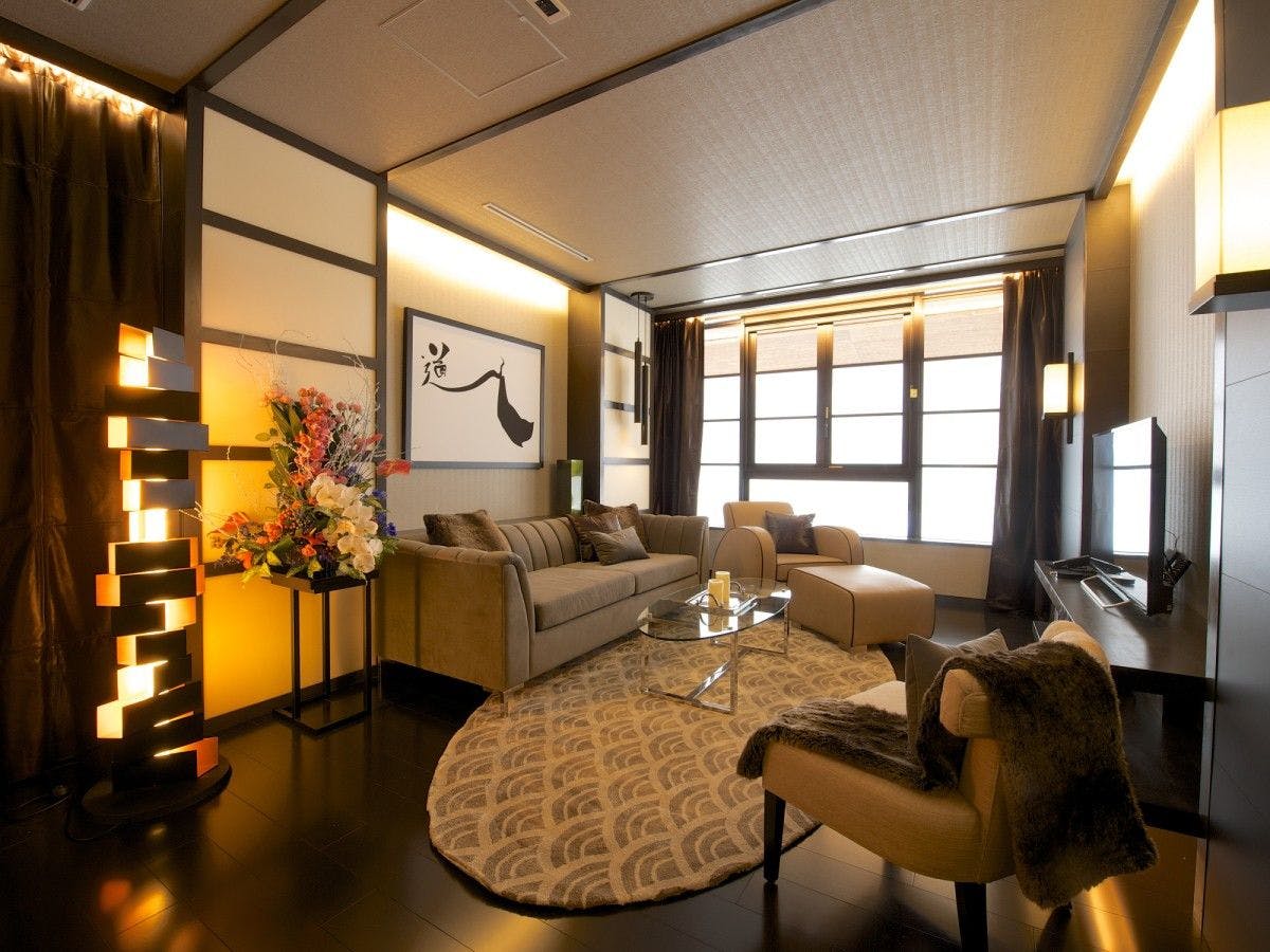 <1階>・和室ダイニング:約20平米・オープンキッチン:約12平米・寝室(クィーンベッド1台)&バスルーム:約26平米・ランドリー・室内スキースノーボード置き場・専用ゴミ置き場・屋内車庫<2階>・リビング:約20平米・主寝室(キングベッド1台)&バスルーム:約40平米・寝室(シングルベッド2台)&バスルーム:約24平米※お部屋タイプにより異なる場合がございます。