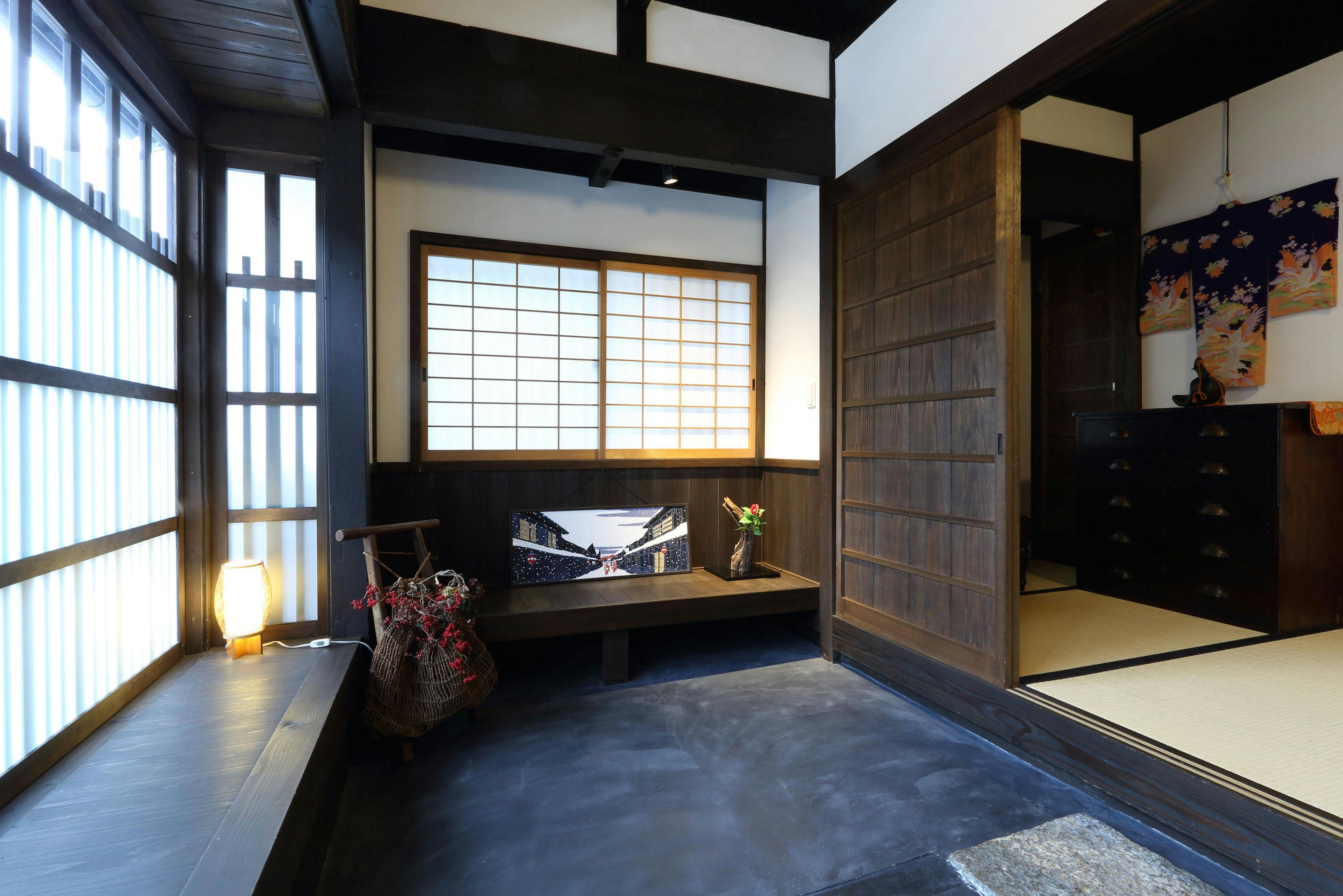 東本願寺すぐ側、築100年を超えるお宿・花。美しい漆喰の壁や、広い土間は町家ならでは。まるで京都に住む様にに滞在できるお宿。地下鉄五条駅が徒歩圏内で、京都以外に、大阪や奈良へもアクセス良好。