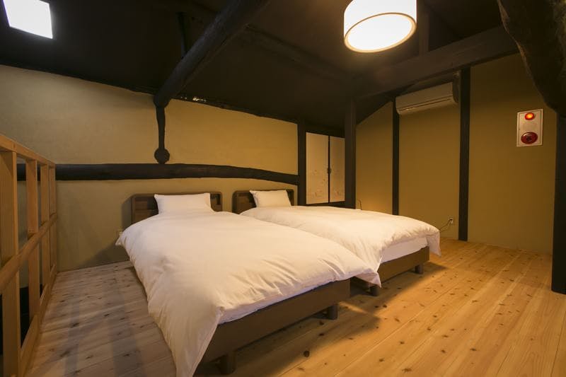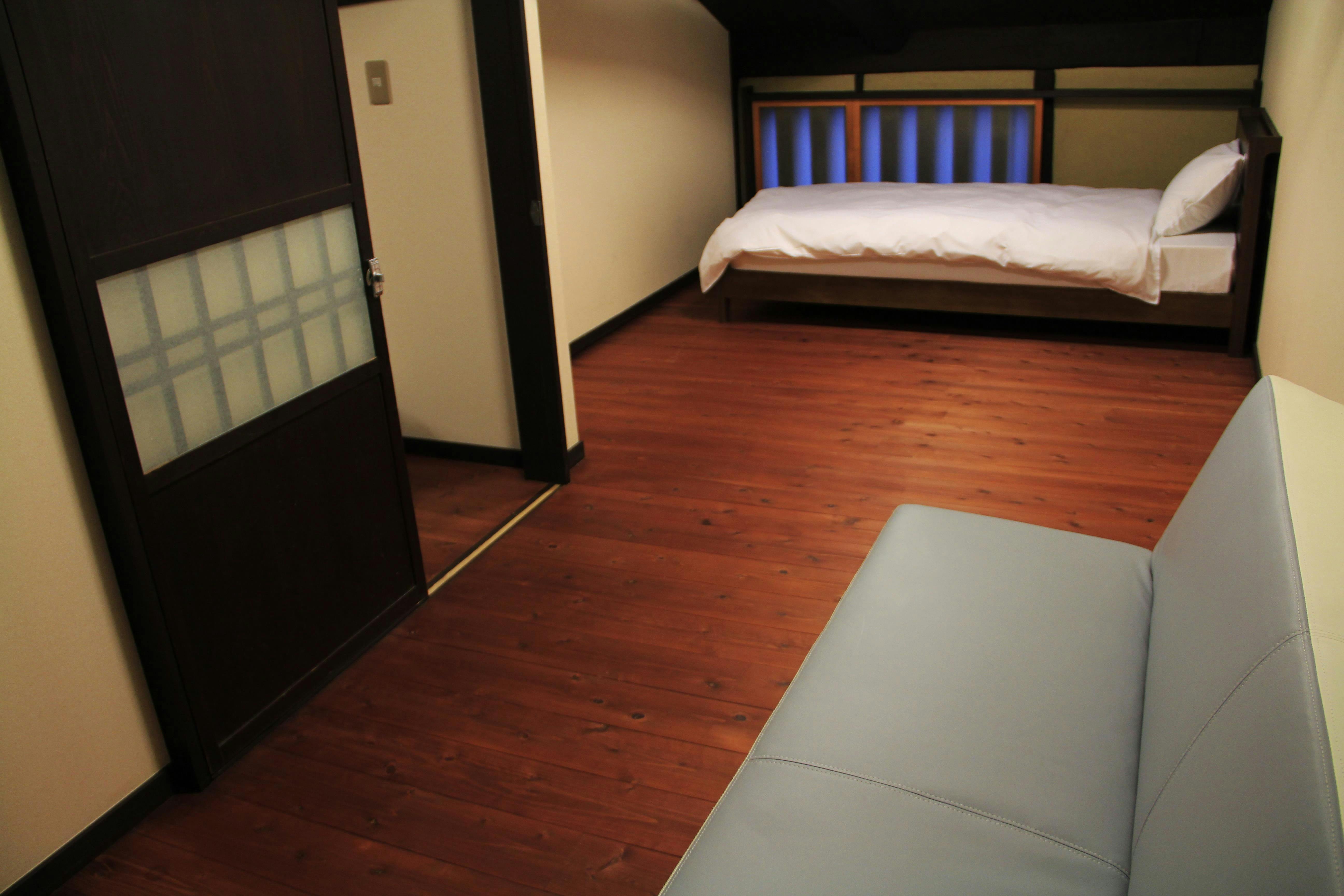 両方ともにフローリング、約八畳ほどの広さです。 一方の部屋にはベッドを2台、もう一方にはベッド1台とソファーベッド1台をご用意しております。
