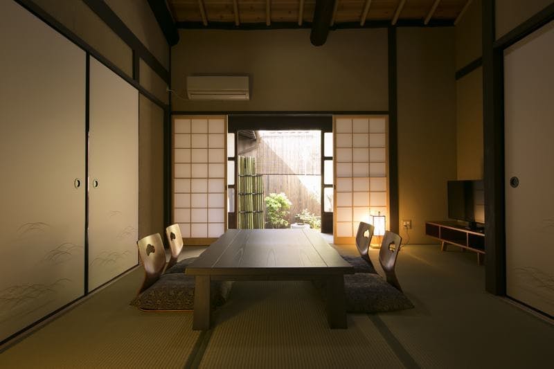 千年の都、平安京の中心である平安宮内裏跡に建つ、築約120年の町家6棟。 6棟並びの町家1棟ずつを1日1組限定の貸切でご宿泊いただけます。内部は昔の風情を残しながらも、全面リノベーションしております。