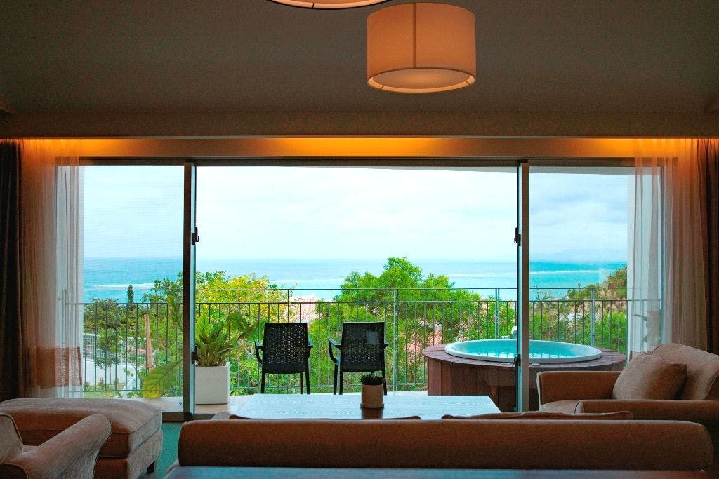 静かで涼しげなお部屋。美しい景色が沖縄の風を運んでくれます。憩いの空間でおだやかな時が流れます。