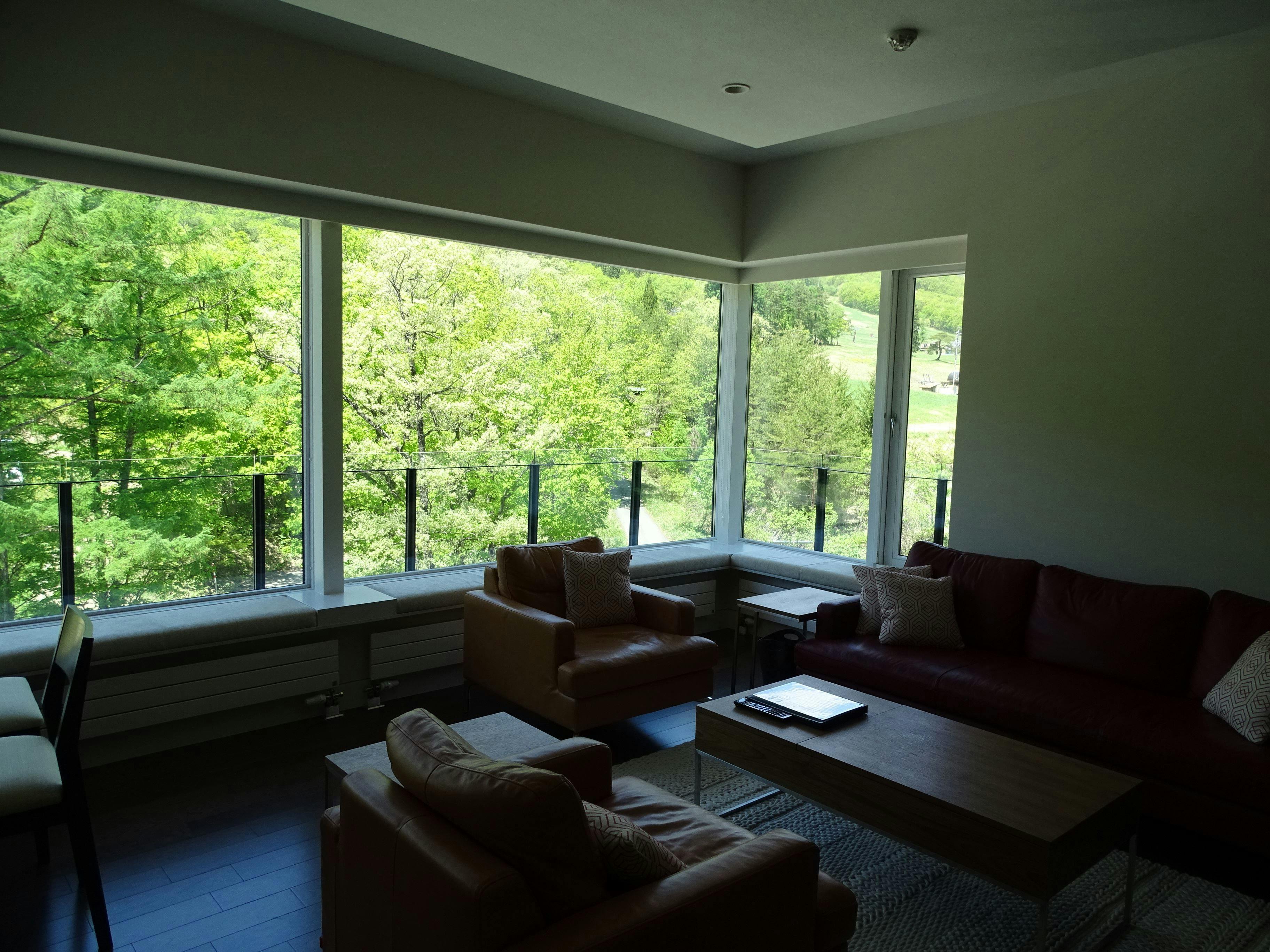 新緑を窓から眺める