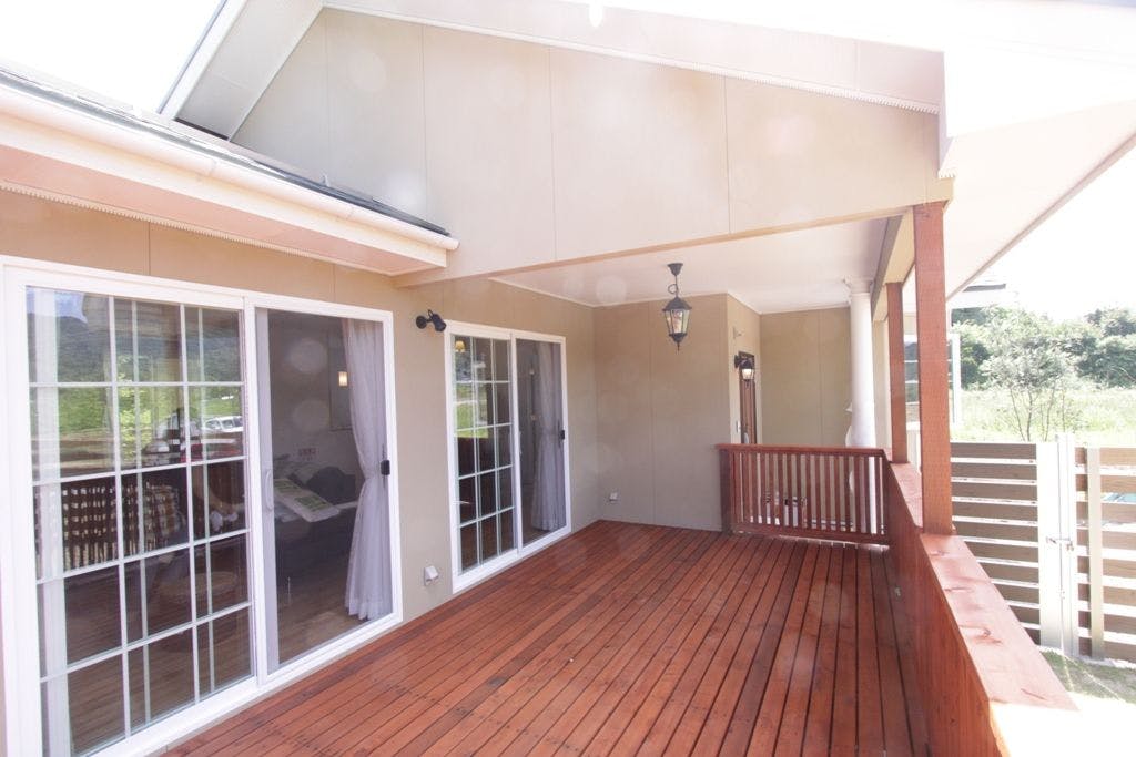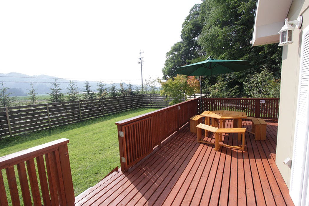 ・ウッドデッキの一部に屋根がついているので、雨が降っても外でBBQができます。