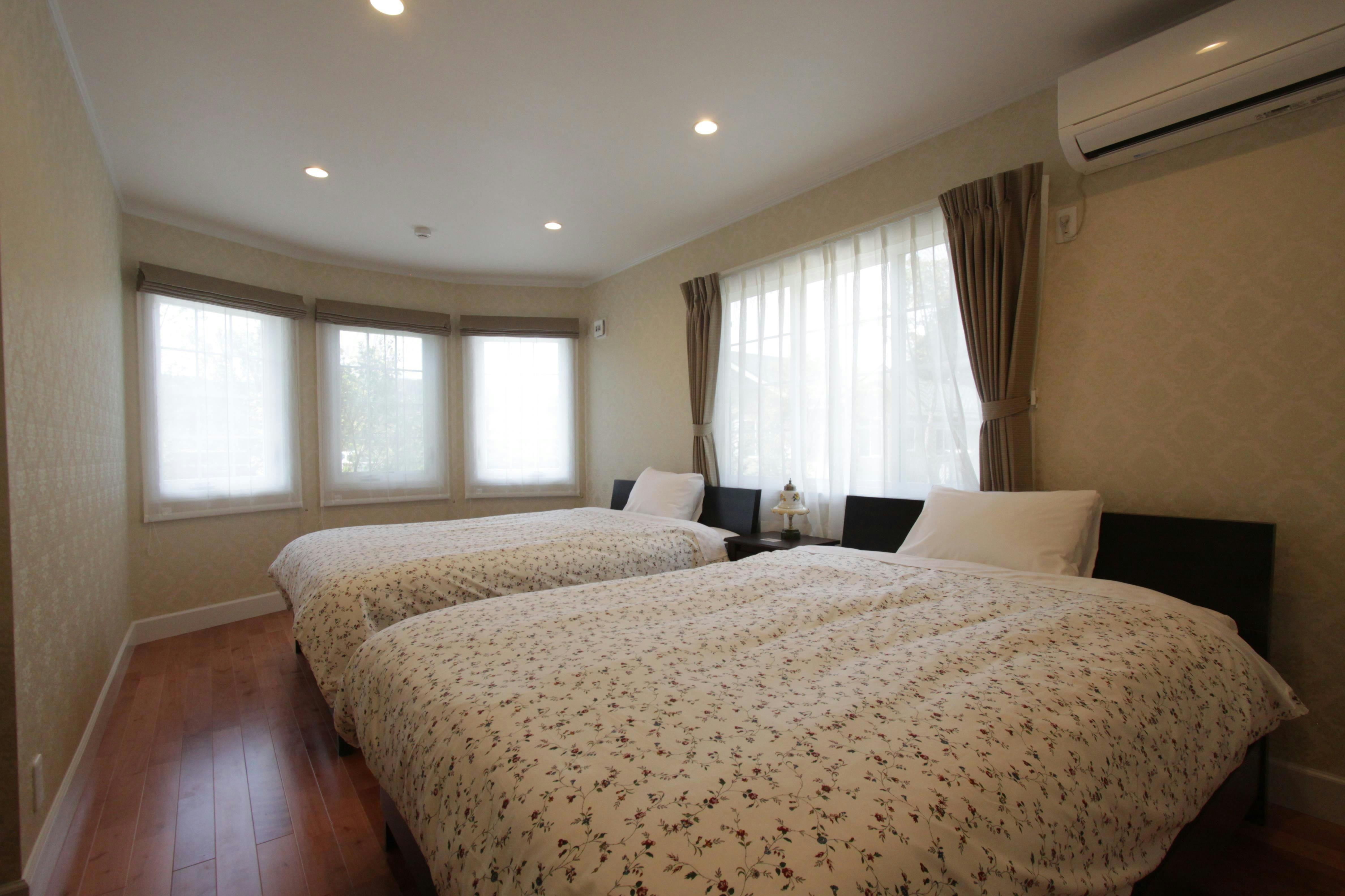 ・洋間1: ダブルベッド2つ、洋間2: ダブルベッド2つ、和室: 布団2セット