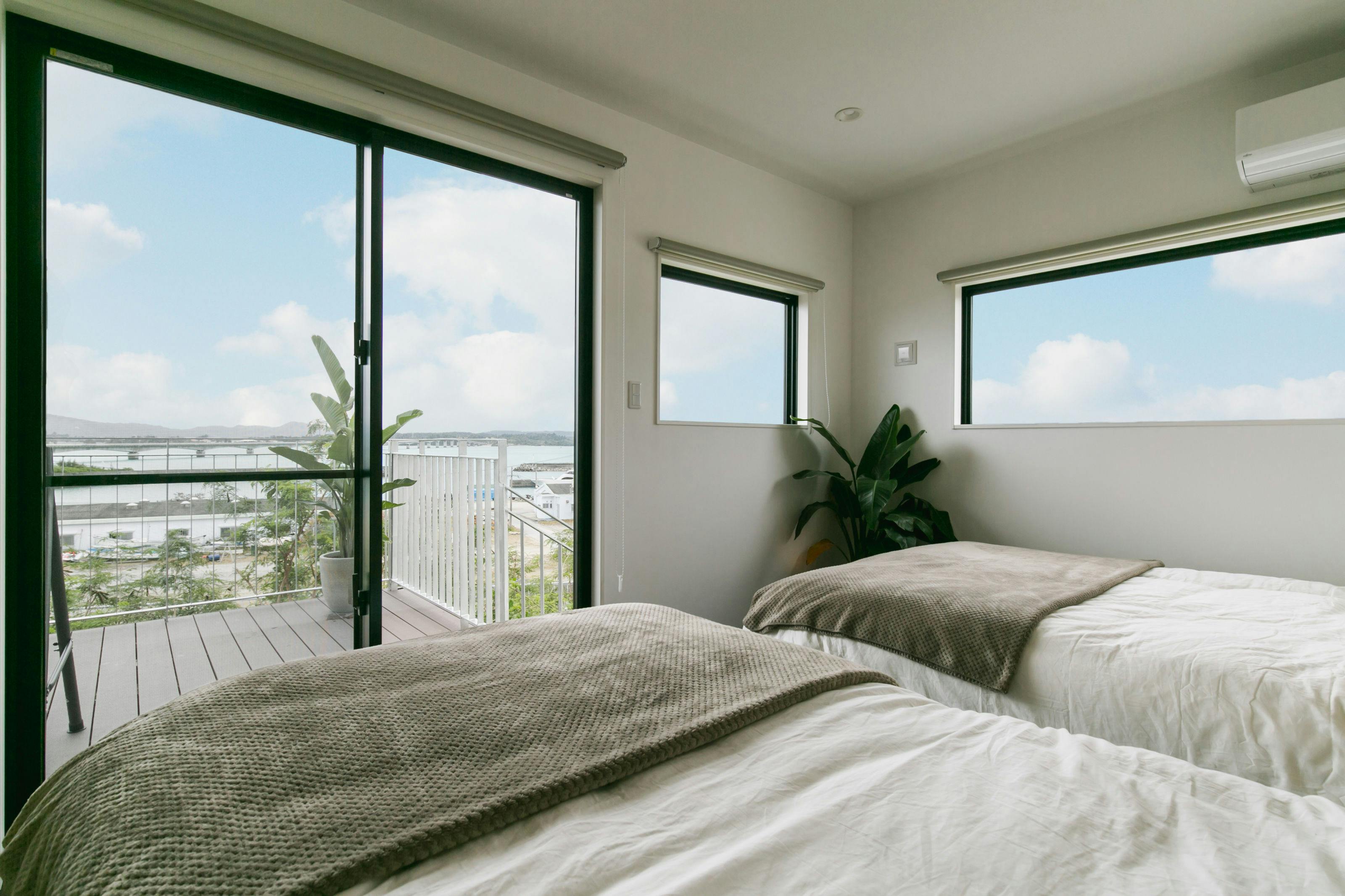 オーシャンビューの開放的な一棟貸しヴィラです。ウッドデッキにはジャグジーがあり、青い海や星空を眺めることができます。古宇利ビーチまで徒歩2分。キッチン、ランドリー付きです。