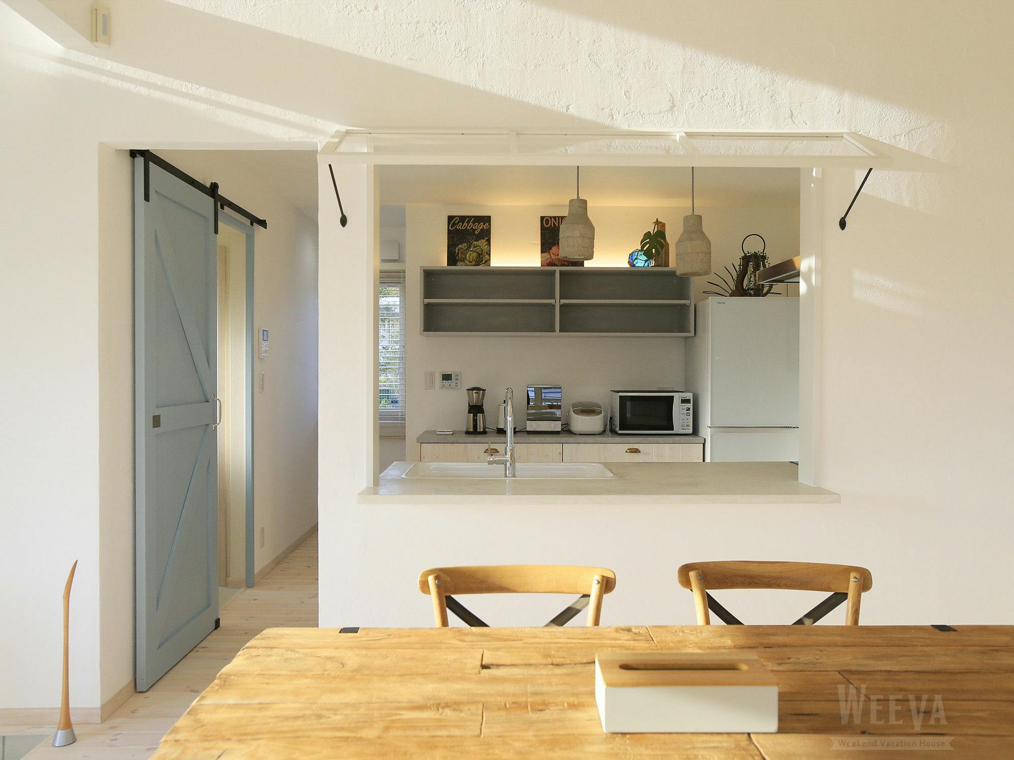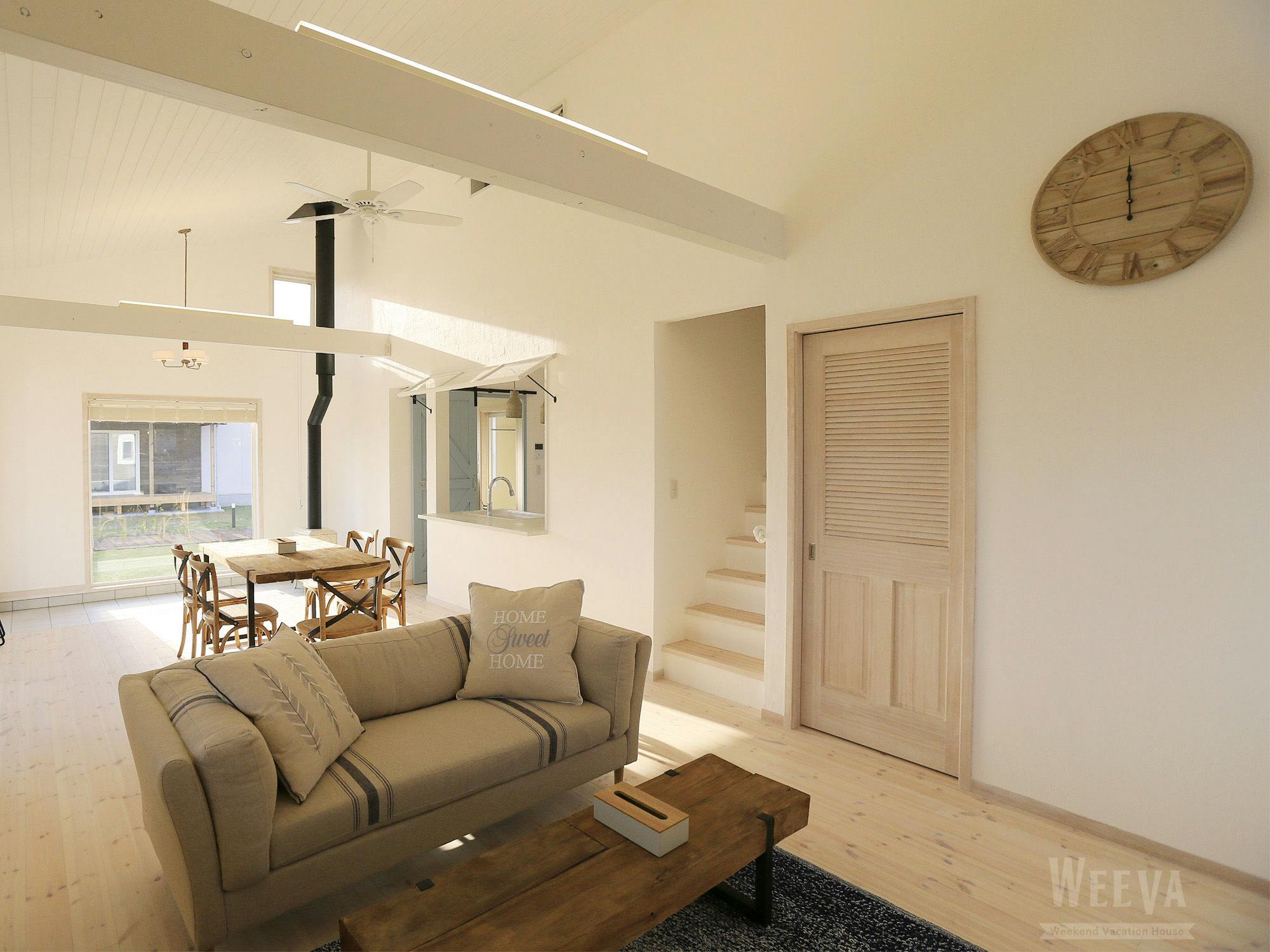 ホワイトを基調とした清潔感あふれる室内、高い天井と見通しが良く開放的なLDKで、家にいながらリゾート気分を満喫できます。