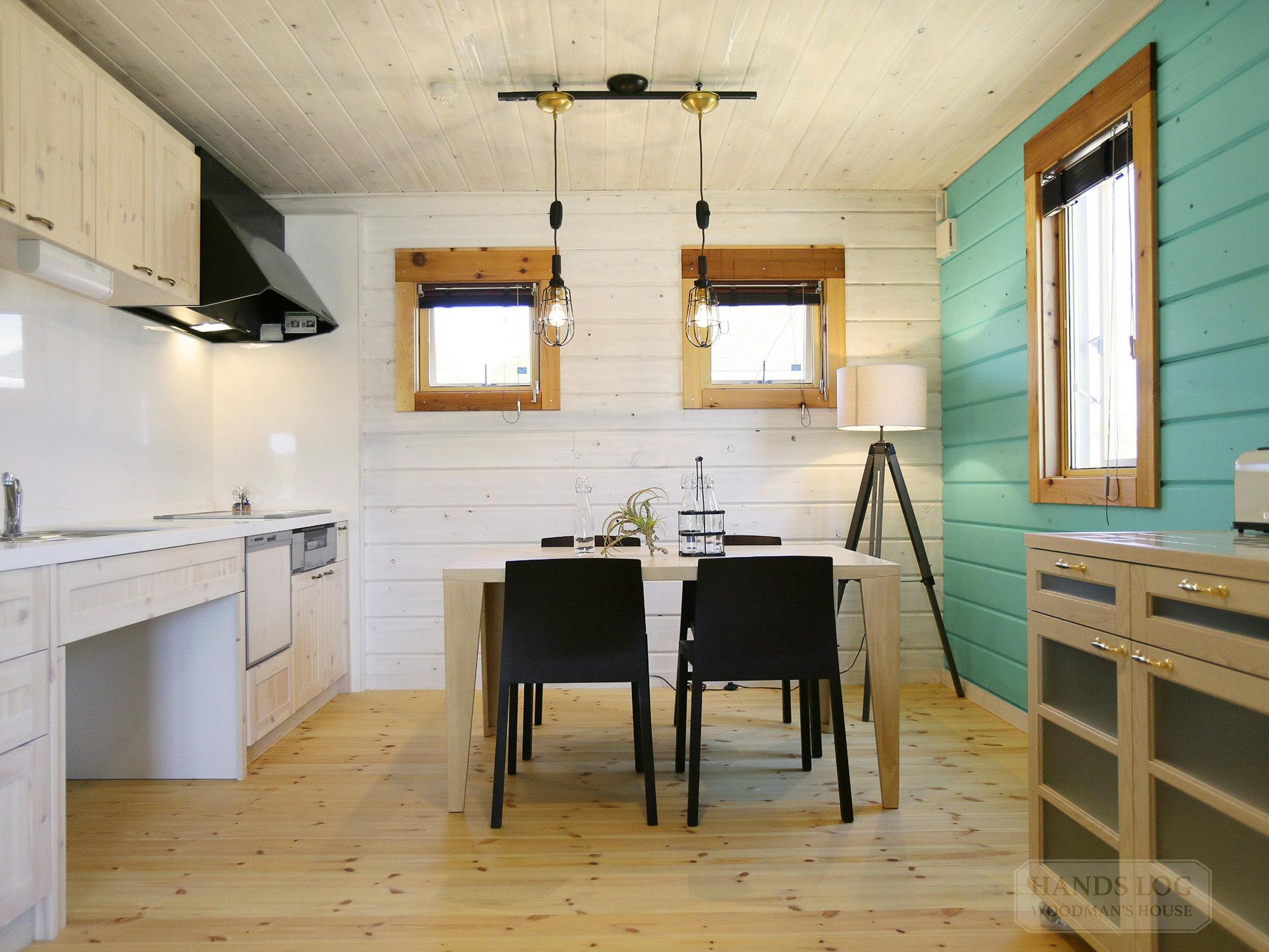 木の風合いを活かしたコテージのようなアメリカンスタイルのインテリア。