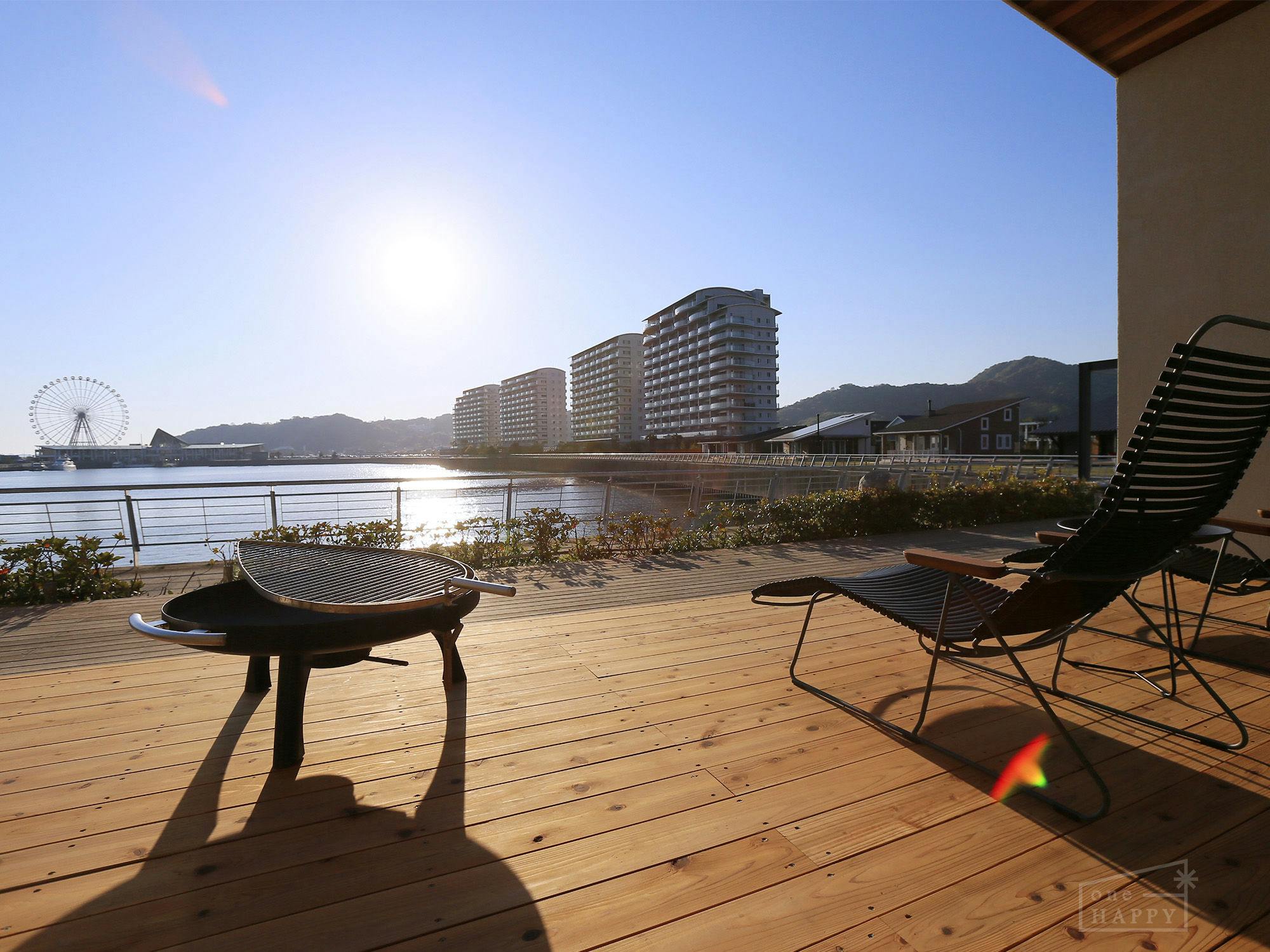 目の前に広がる穏やかな海と心地よい潮風。ウッドデッキから夜景を眺めたり、思いのままにお過ごし下さい。