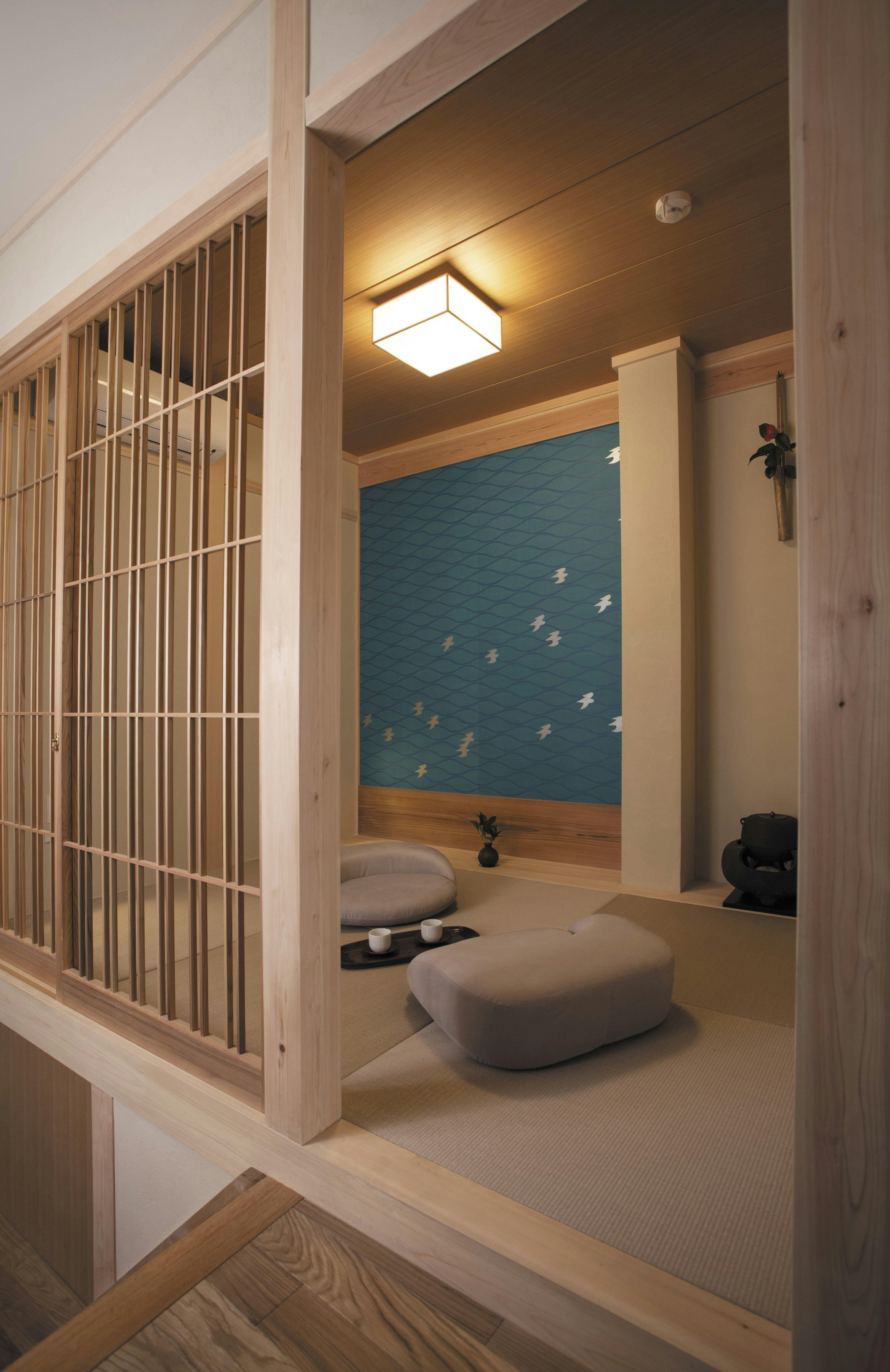 ・リビング・ベッドルームの壁や床、天井等は全て自然の素材(京都北山杉や珪藻土等)で作られ、木の香りが漂う空間となっています。
