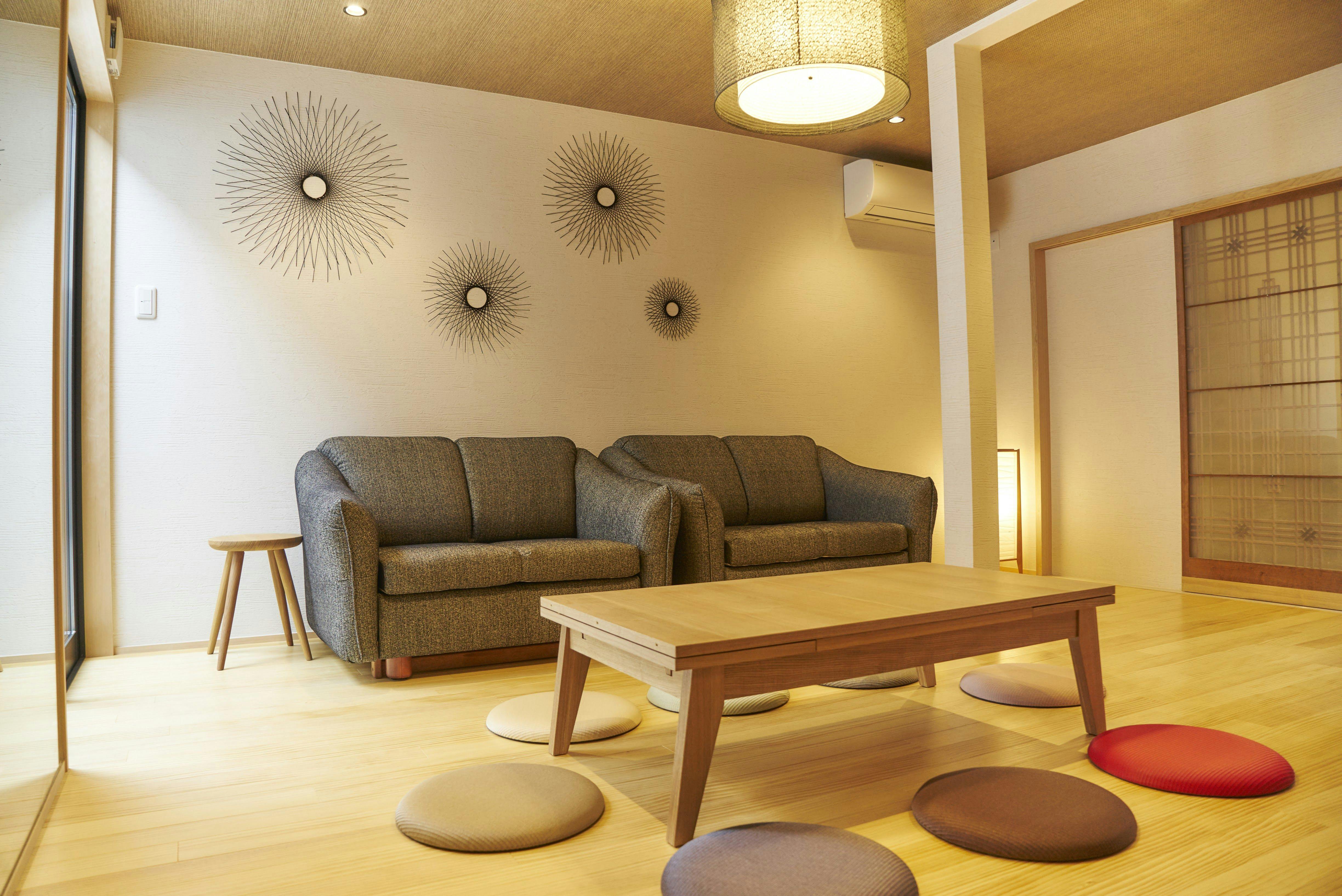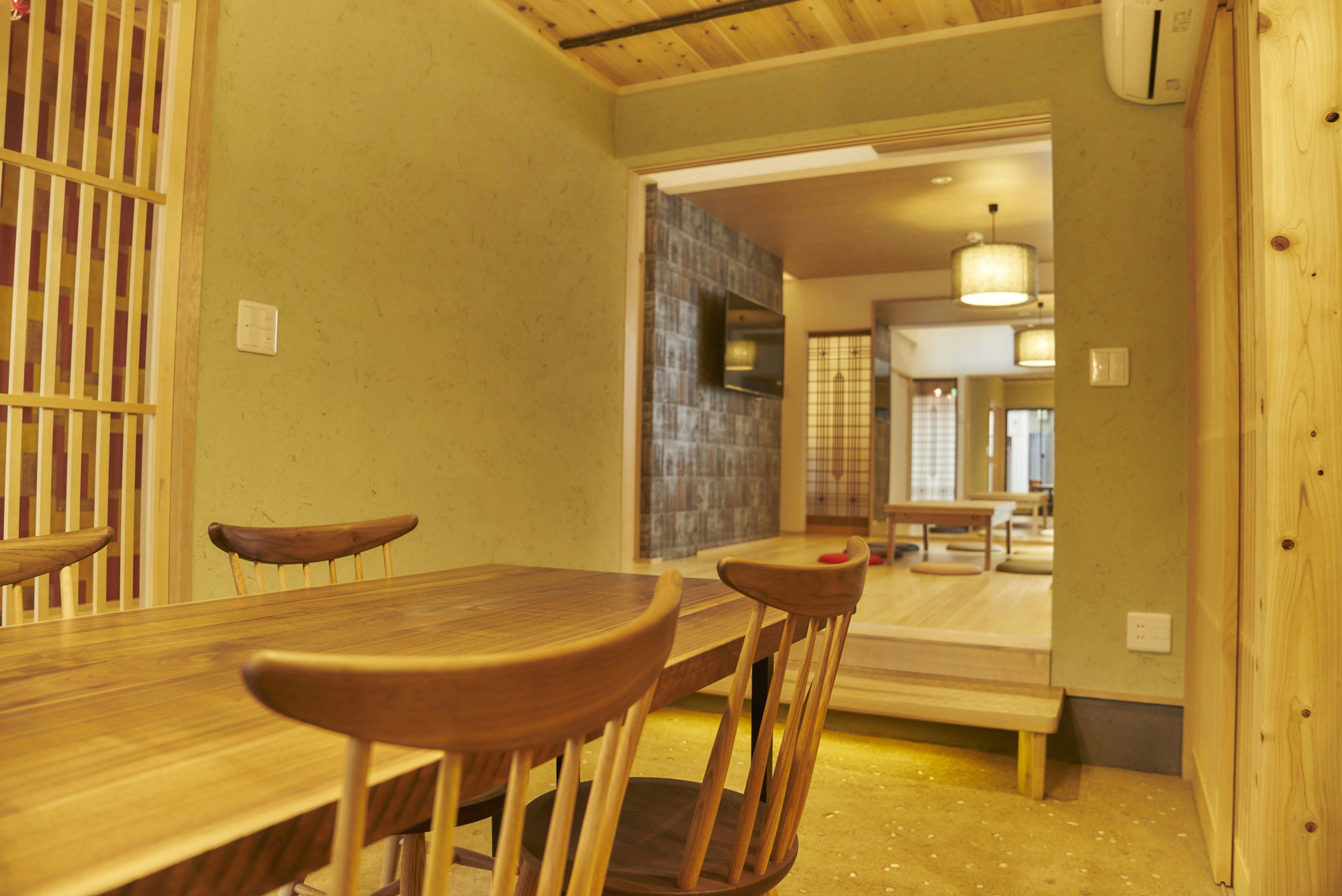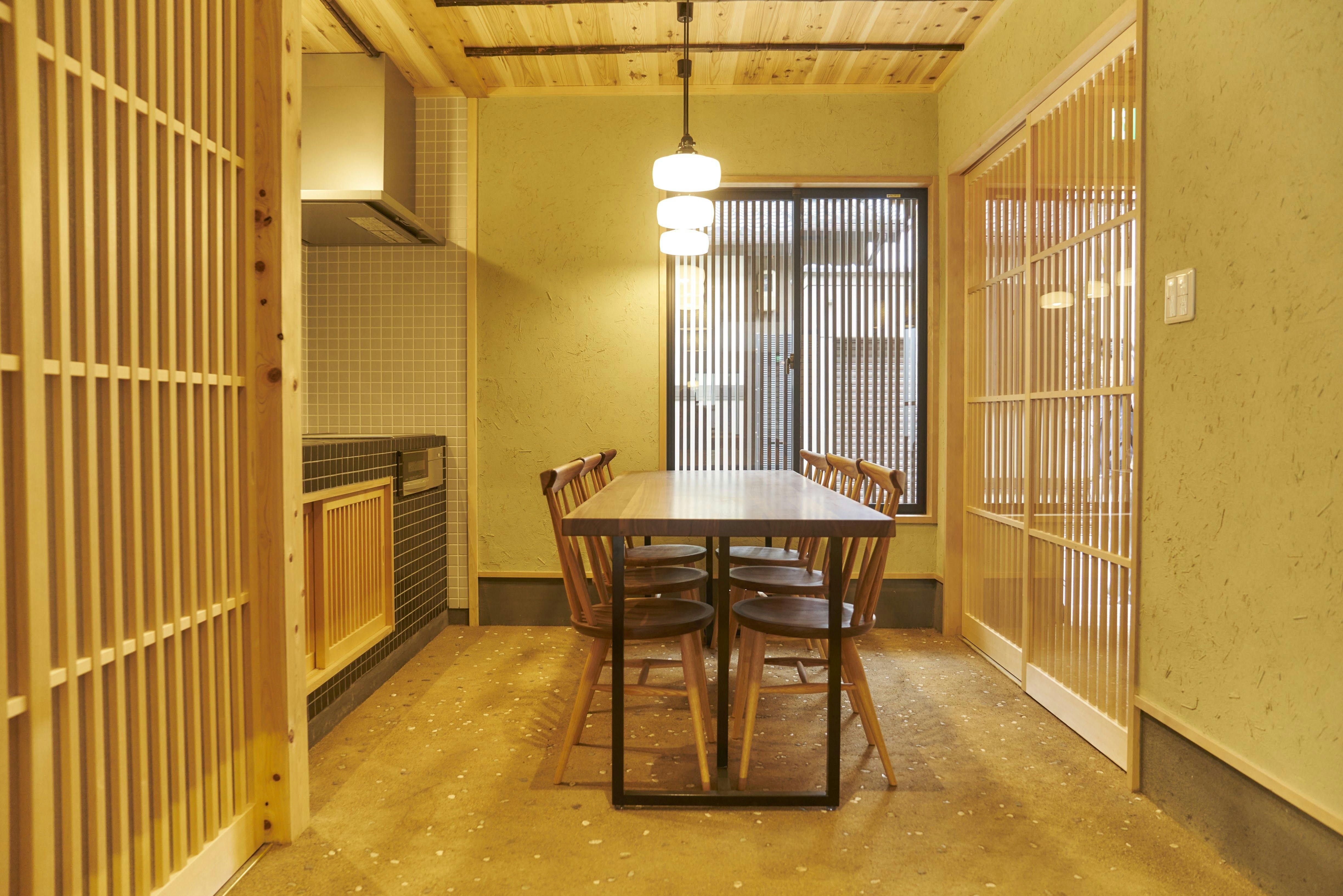 土間のダイニングキッチン、坪庭が見渡せる浴室、開放的吹き抜け空間など、京町家らしさが詰まったお宿です。