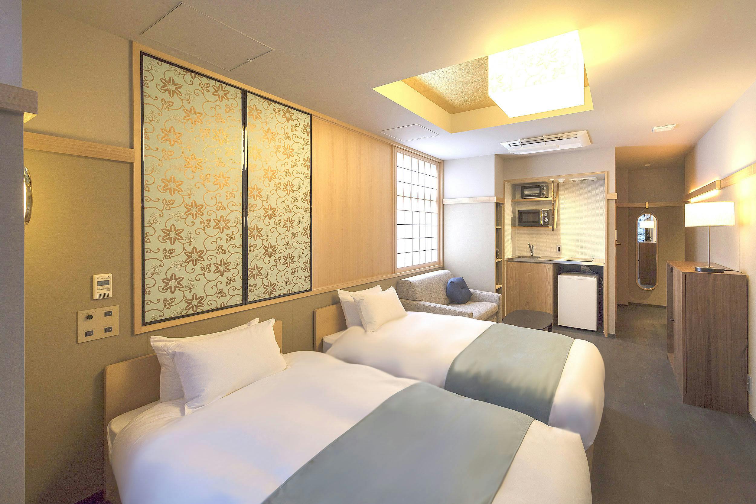 「和」をコンセプトに、京町家の趣や遊び心を散りばめたホテルです。全室にミニキッチンを完備し、館内には無料のランドリーもあり、連泊滞在にも最適です。祇園まで徒歩5分の好立地にあります。