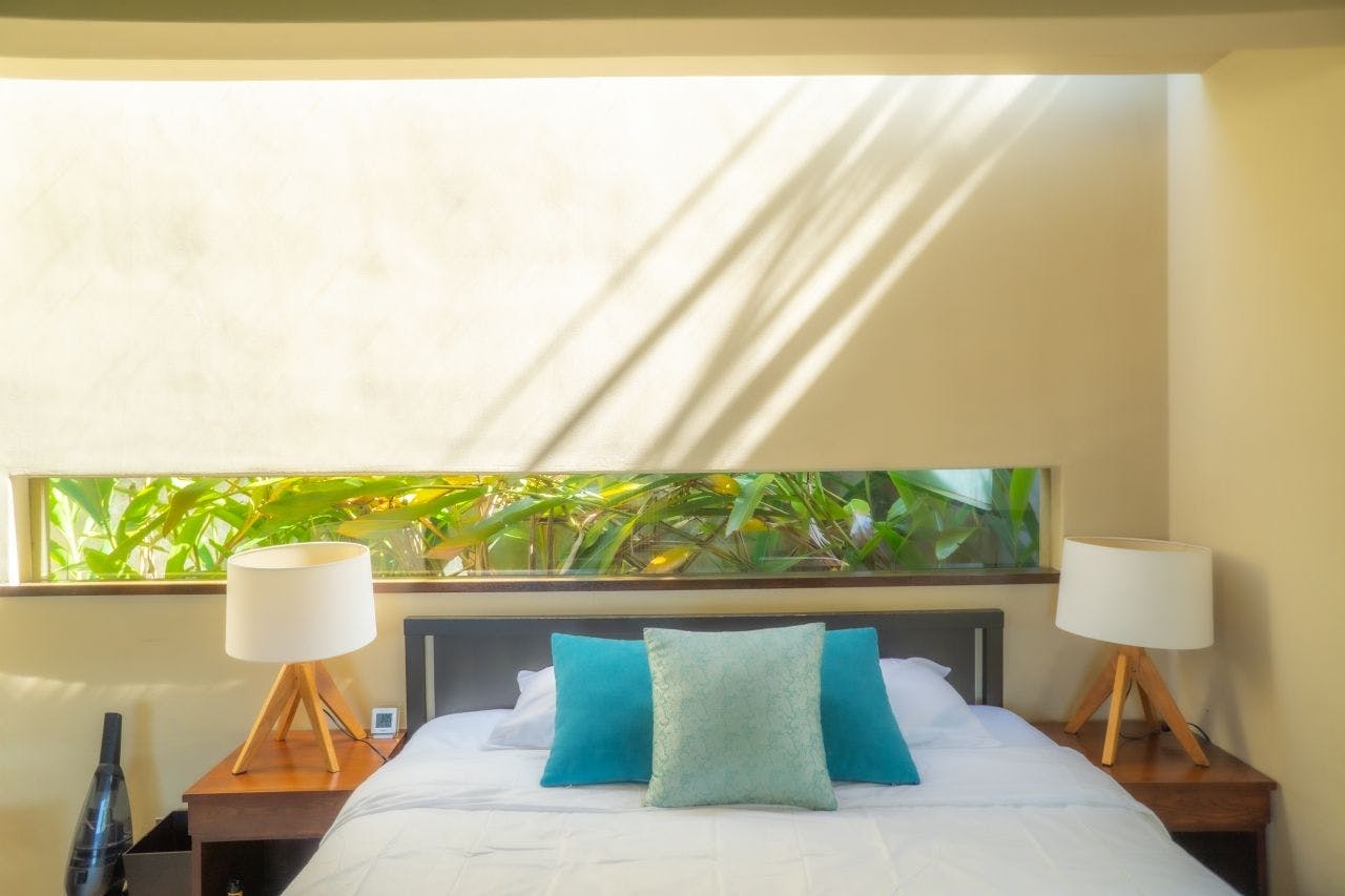 お部屋は全室ダブルタイプ。ゆったり広々クイーンサイズベッド(横幅160cm)