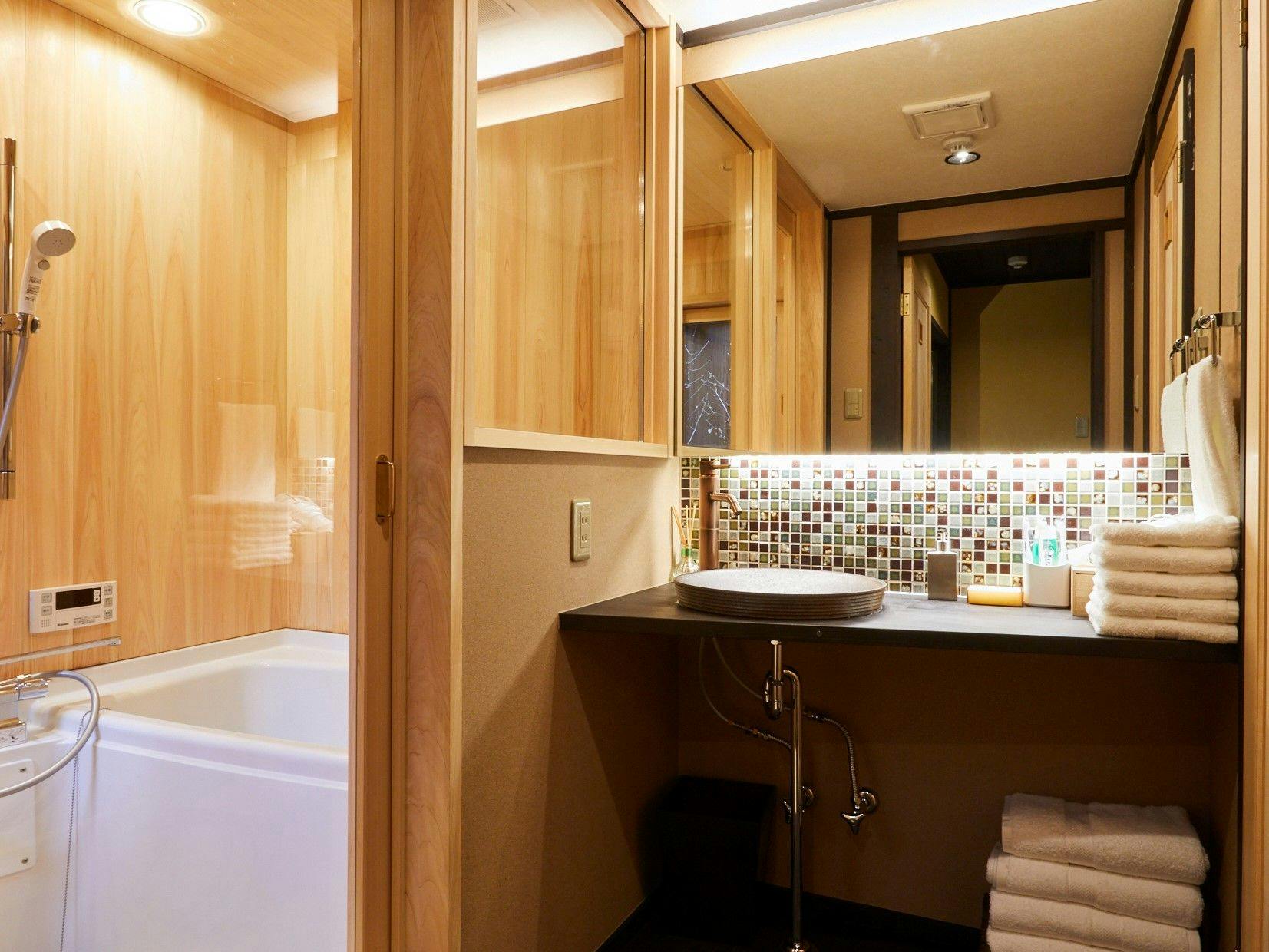 古き良き町並みの中にたたずむ、風情ある町家の一棟貸し。3つの寝室やダイニングキッチン、開放感のあるお風呂も完備しています。世界遺産の東寺に徒歩約2分で行け、バス停にも近いので観光にとても便利です。