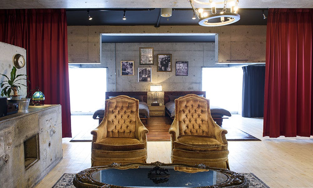 元美容室、元BAR、元キャバレー、5つのショップをそれぞれ客室にいたしました。