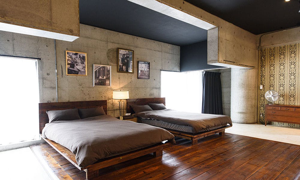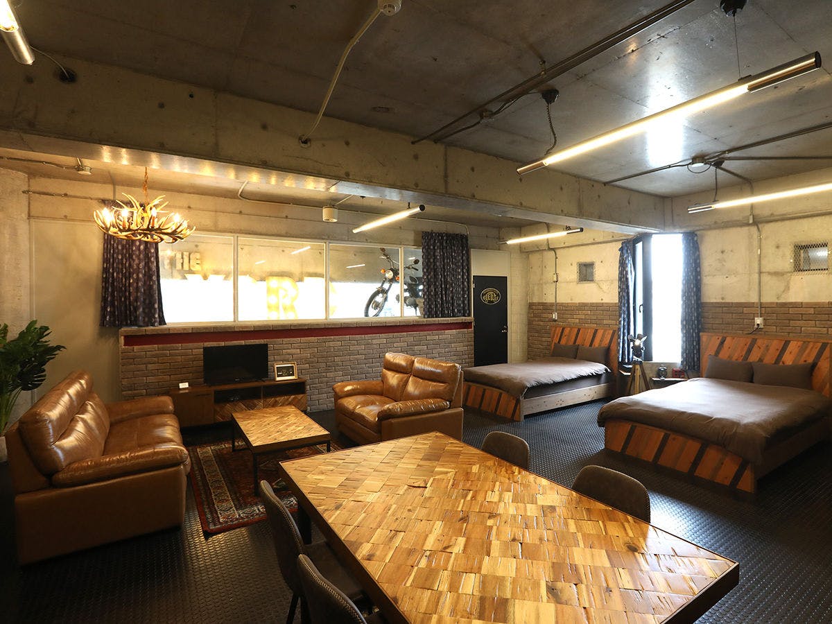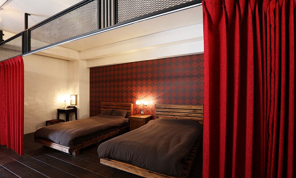 元Bar「テネシー」だった店舗は、時代とともに工房へと変化し、広々とした空間を贅沢に使い新しく宿泊施設として生まれ変わったお部屋「レッドルーム」。