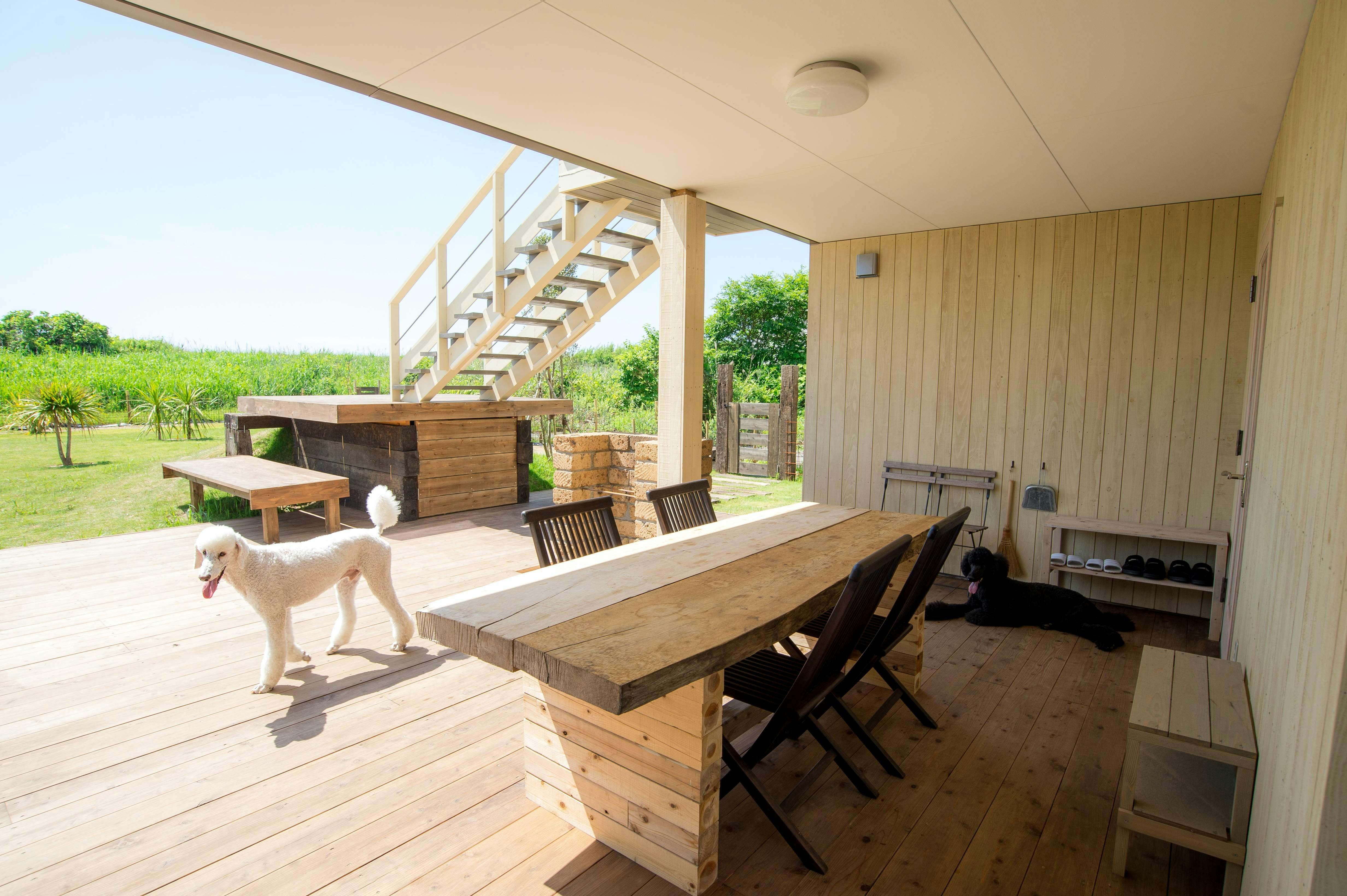 九十九里海岸沿い、大型犬も大歓迎のドッグコテージを一棟貸切っていただけます。広々としたお庭で海鮮バーベキューや広い砂浜での愛犬とのお散歩をお楽しみください。