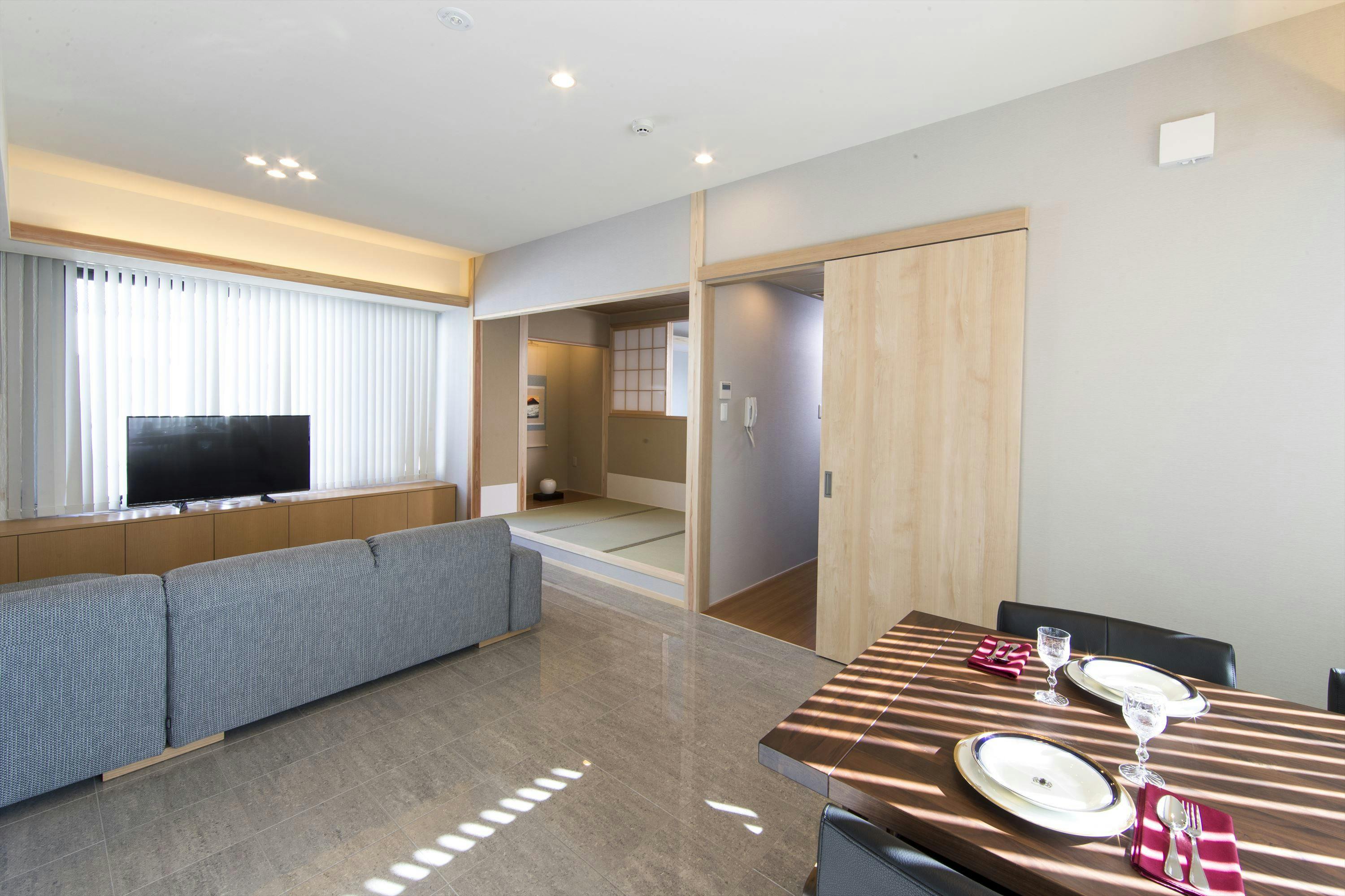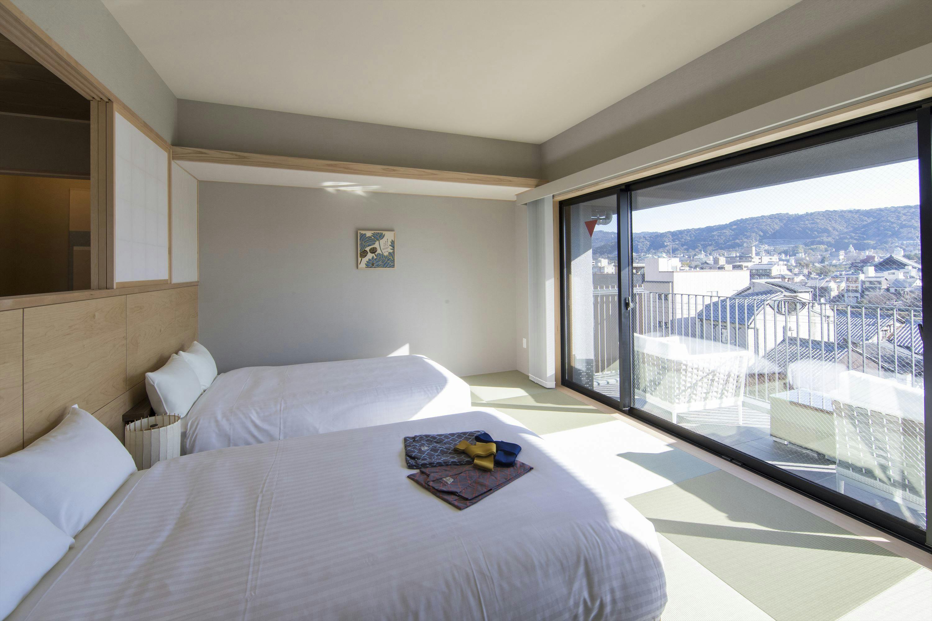 バルコニーから京都東山の景色が見える66平米のお部屋になります。