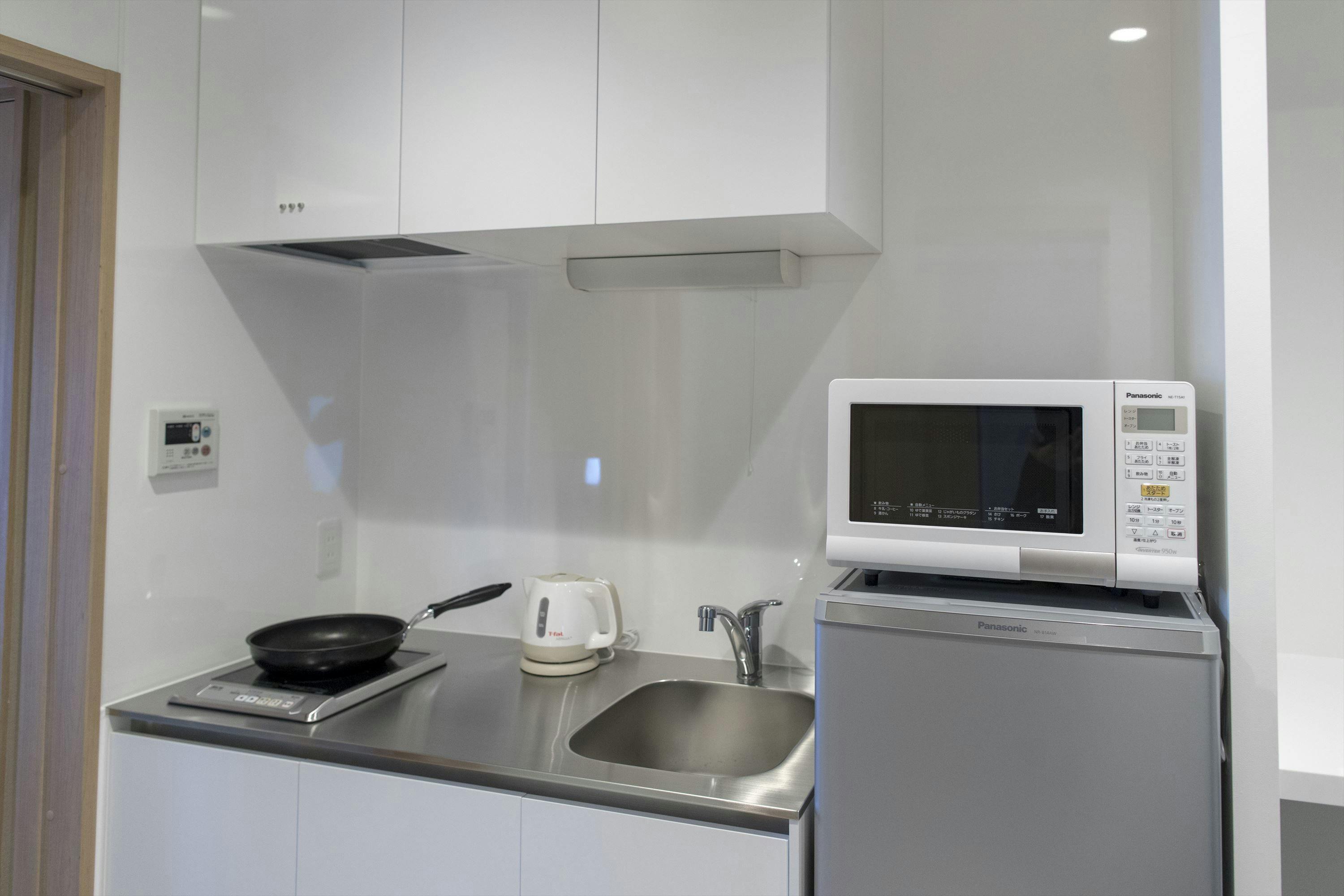 洗濯機、食器、冷蔵庫、電子レンジ、IHコンロ、電気ケトル、ワイングラス、テレビ、ヘアドライヤー