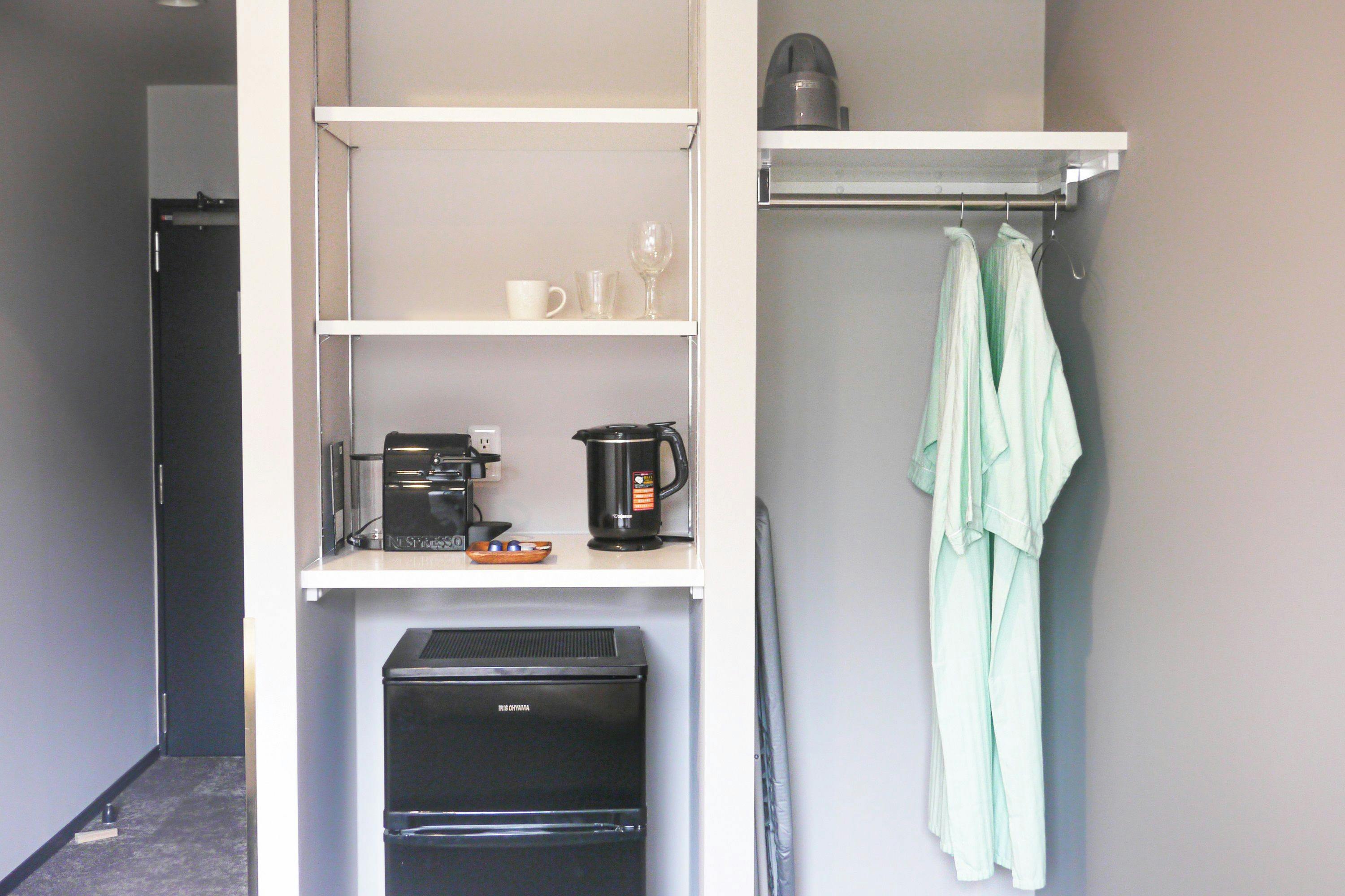 シャンプー、コンディショナー、ボディソープ、歯ブラシ、ボディタオル、綿棒、カミソリ、バスタオル、フェイスタオル、コーヒー、お茶、アイロン、アイロン台、掃除機
