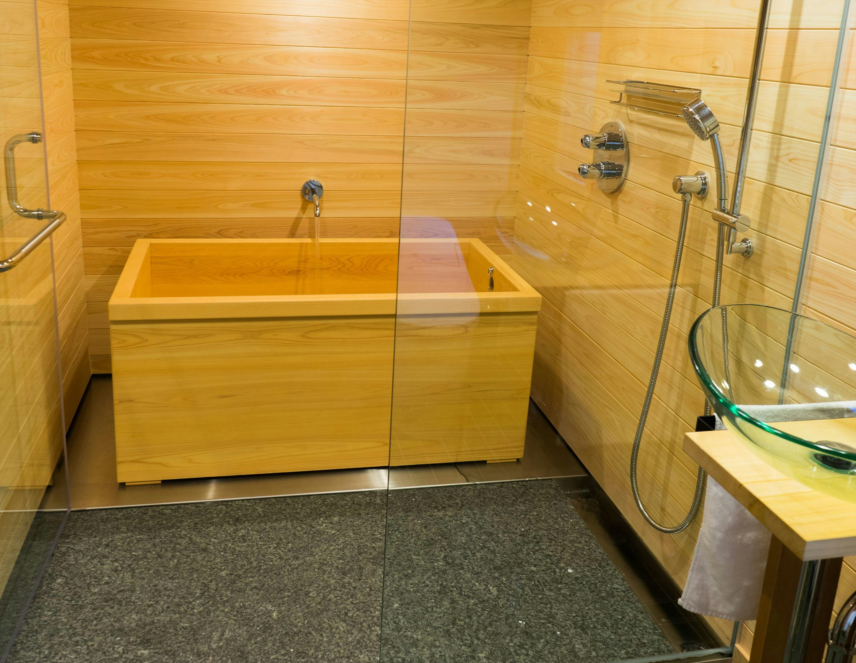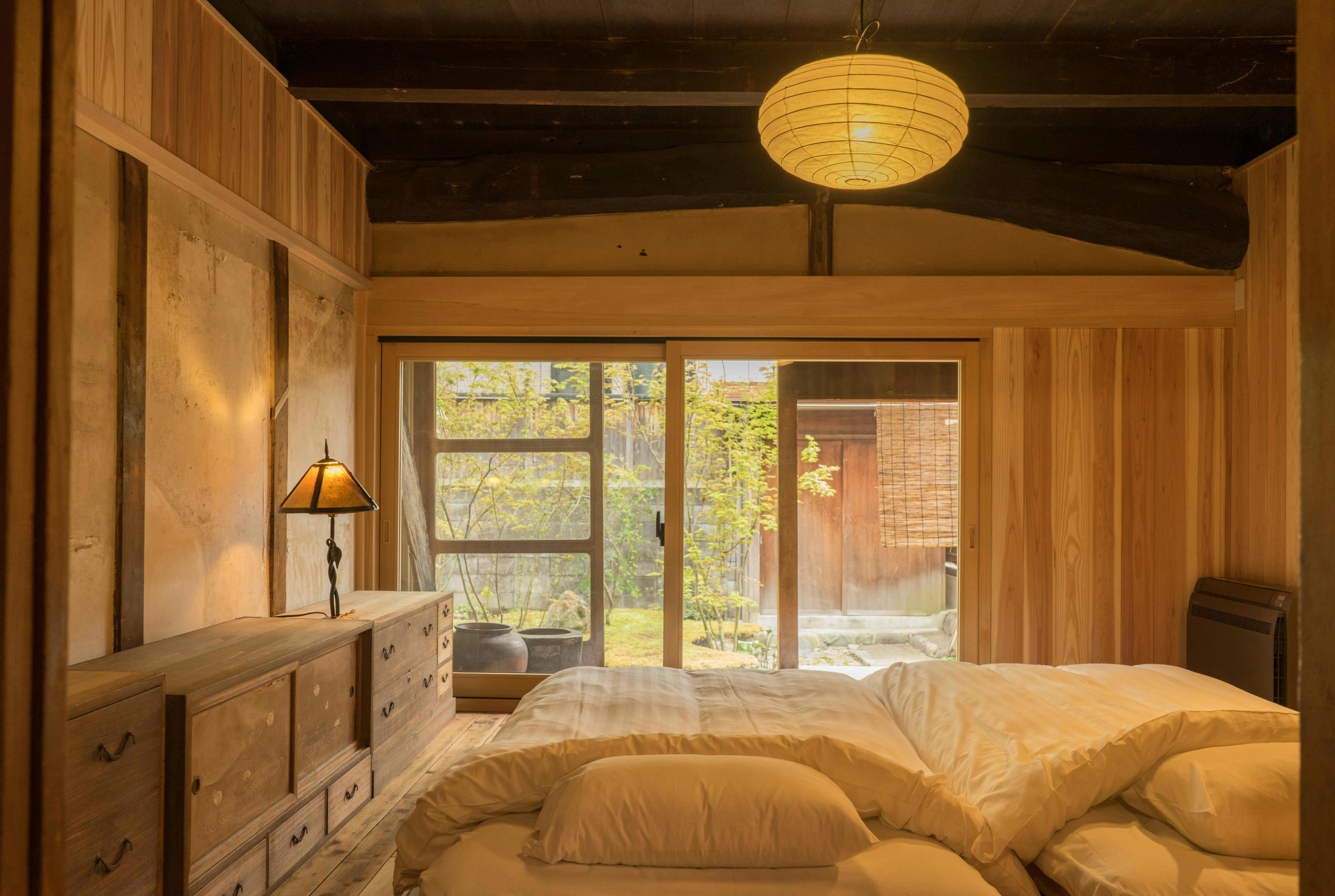 築100年の風合いを残しながらも、バスルームを岐阜県産の桧で一新した、貸切のスウィートルームです。