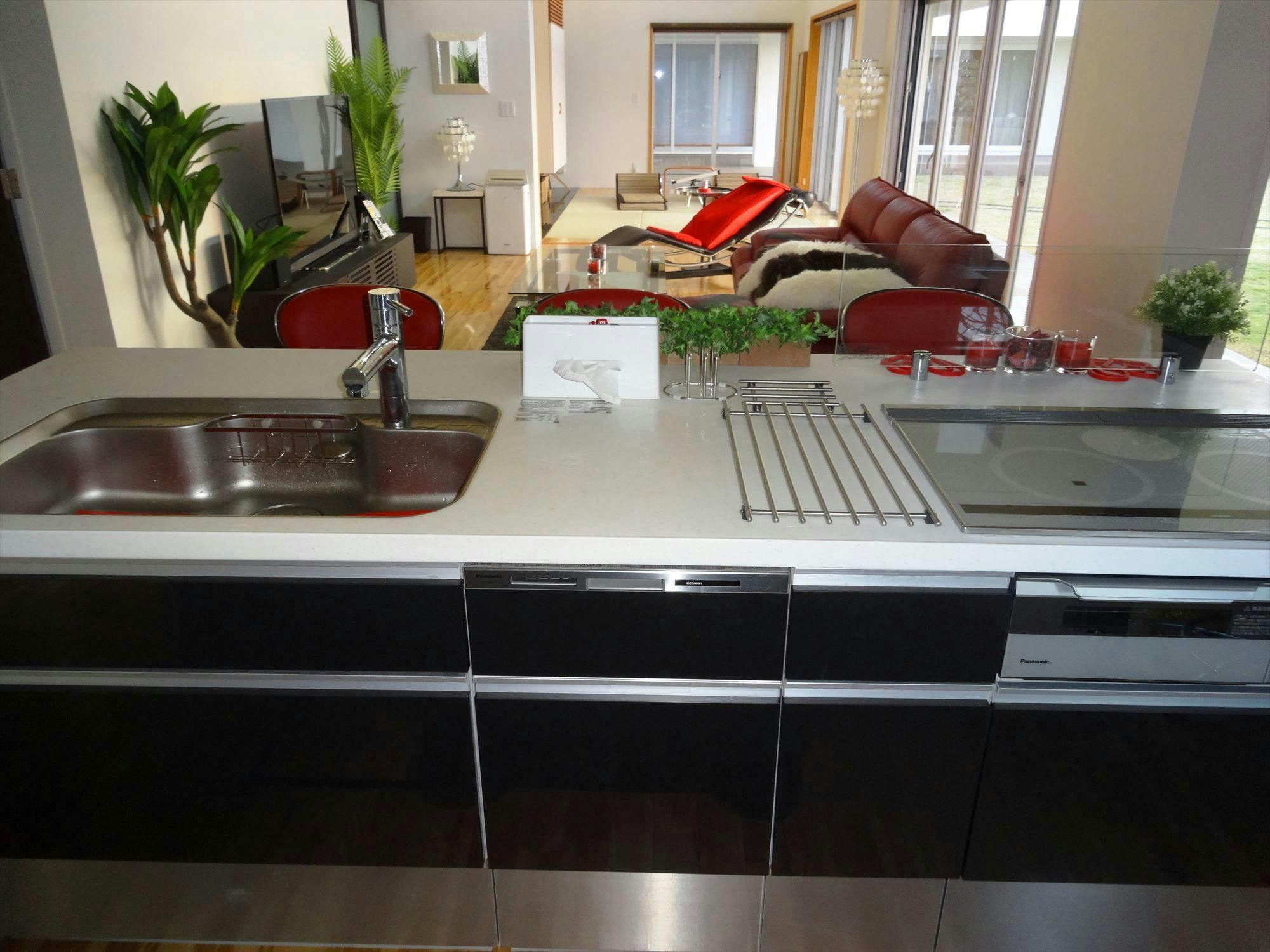 IHクッキングヒーター<3口電磁調理器・魚焼きグリル> 、冷蔵庫、冷凍庫、調理器具一式、食器類、カトラリー、オーブントースター、電子レンジ、食器洗浄機、浄水器、軟水器、ホットプレート、たこ焼きプレート、炊飯器、電気ポット、ミキサー、調味料(砂糖、油なし)