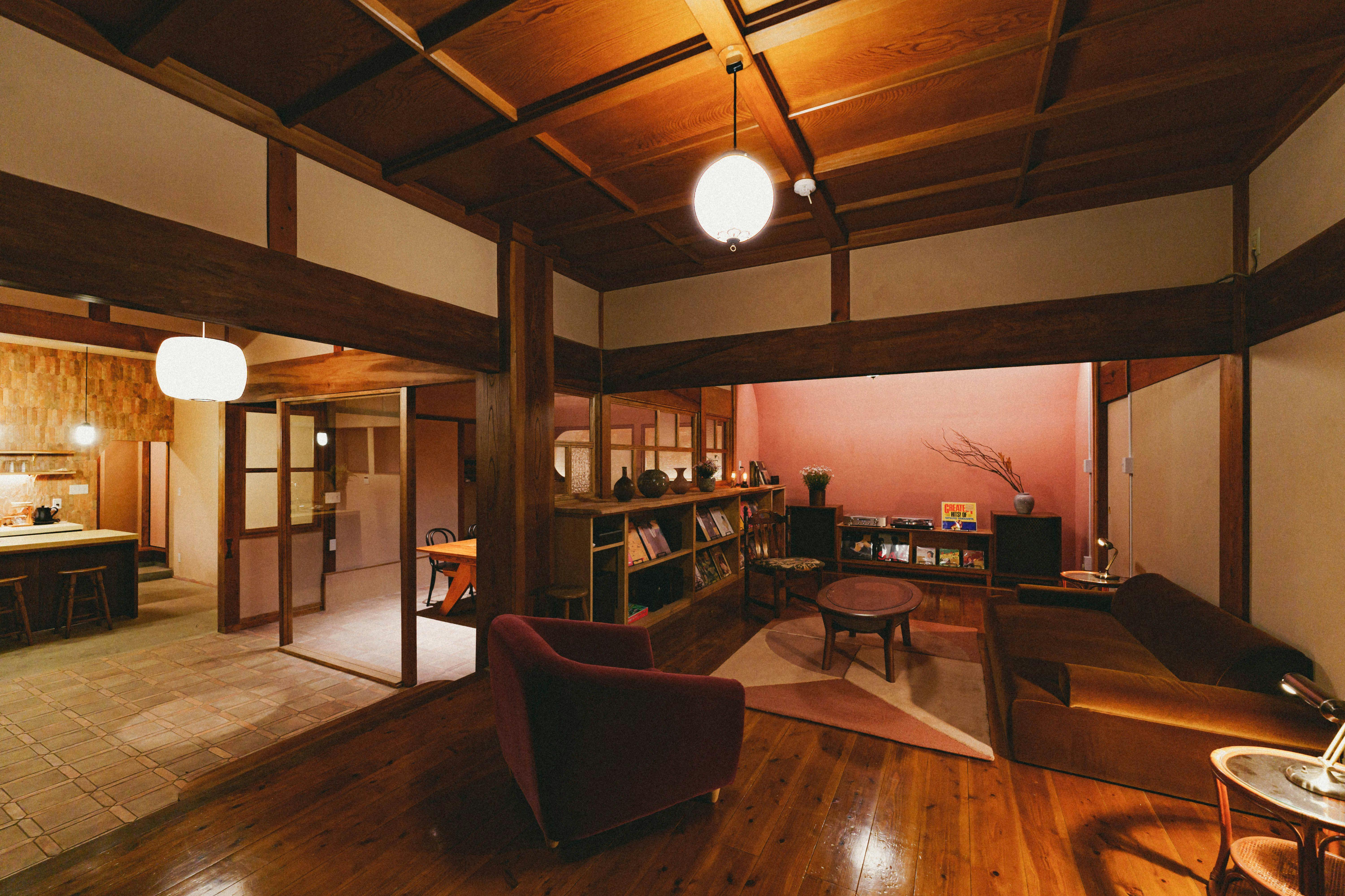 <古民家一棟貸し>昭和ムードで寛ぐ 花の里の宿 昭和建築の民家をモダンかつ機能的にリノベーション。2022年4月リニューアルオープン!ヴィンテージ材が醸し出す昭和モダン×和の空間へようこそ。