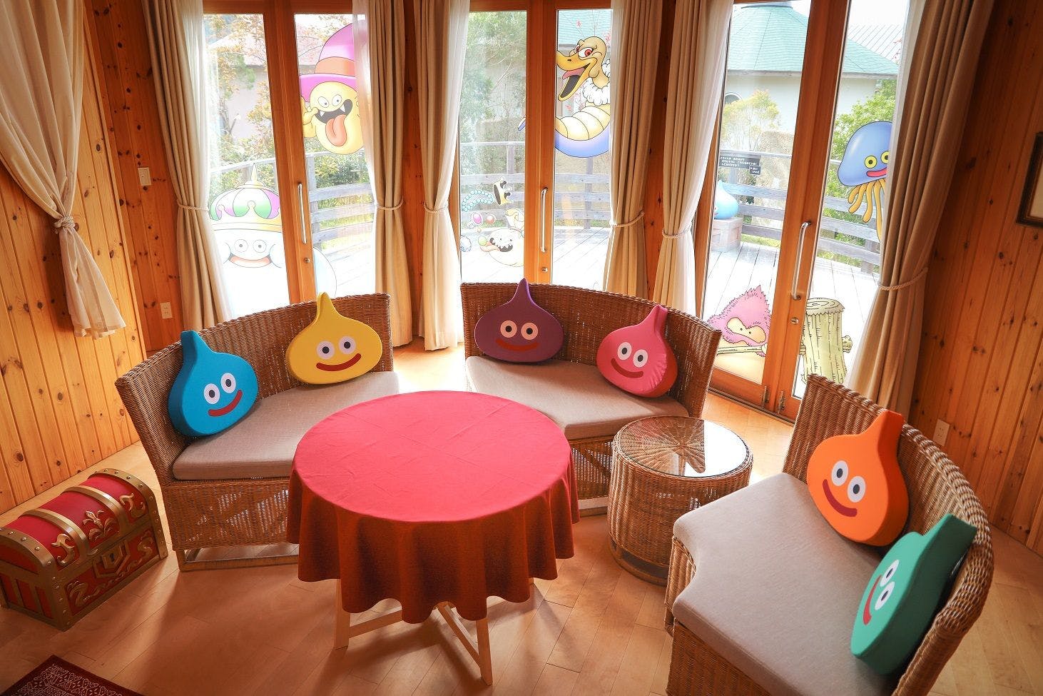 「ドラゴンクエスト」に登場するモンスターなどオリジナルデザインがあしらわれており、天井高が 5m を超える客室に設置された天窓から見える星空とあわせてお楽しみいただけます。ベット…シングルベット2台、2段ベット
