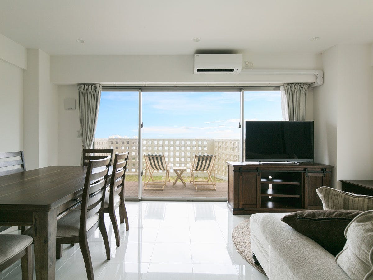 最大6名での滞在が可能なテラス付きLDK。オーシャンビューです。