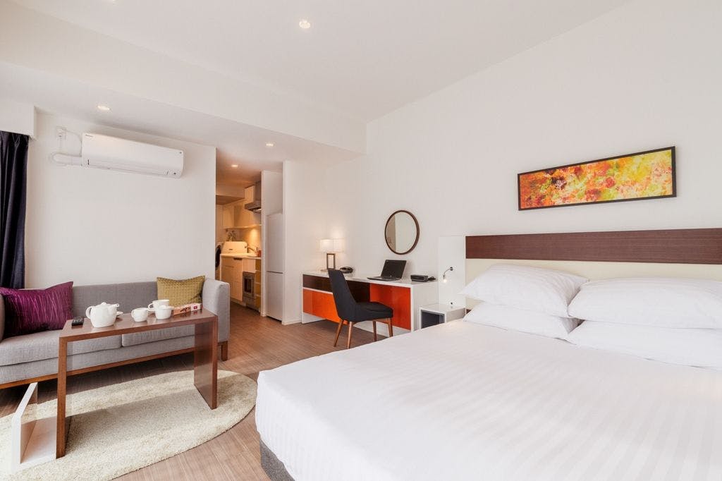 1ベッドルーム アパートメントは都会の喧騒から離れてゆっくりお過ごしいただける、最高の空間です。広々としたフルキッチンでお料理作りを楽しんだり、快適なリビング・ダイニングエリアでゲストをおもてなししたりと、ご自由にご利用いただけます。