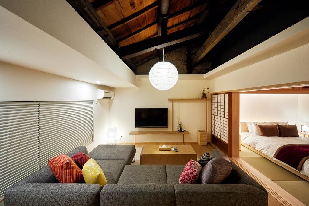 河原町まで徒歩5分。別荘にいる様なゆったりとした空間でゆったりとお過ごし下さい。一棟貸切で寝室が複数あり、キッチンやランドリー設備もございます。
