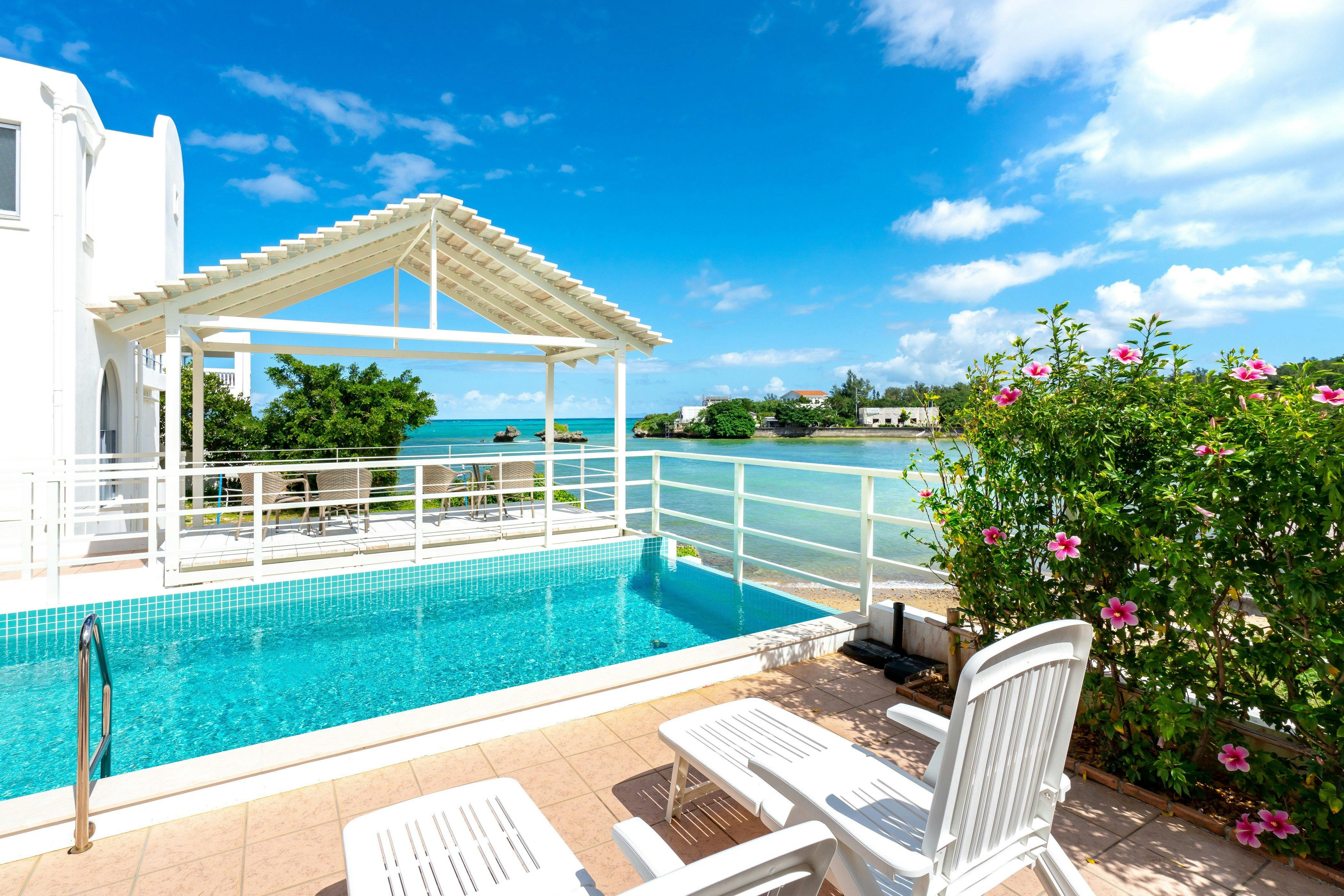 ビーチまで徒歩10秒。ウミガメが産卵に訪れる美しいビーチの目の前に位置する、一棟貸切のデザイナーズハウスです。リビングやルーフトップから広がる美しい海は圧巻で、至福のひとときをお過ごしいただけます。