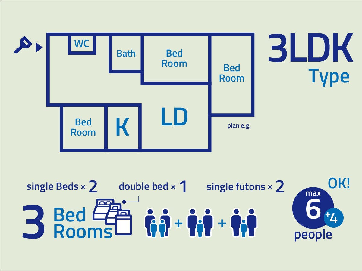札幌駅から徒歩約10分。1LDKから3LDKと用途に合わせて選べる3タイプの客室をご用意!ご家族や友人と一緒に、出張に、人数・予算に応じてお選びいただけます。