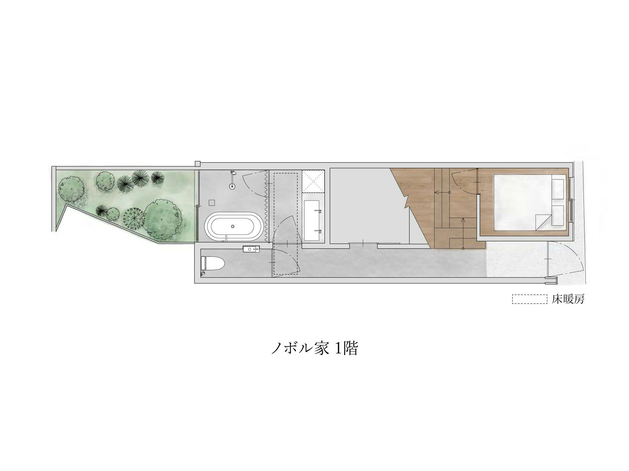 伝統的な京町家建築の限られたスペースを最大限に有効活用するため考案された多層空間。バスルームからは、四季ごとに表情を変える坪庭を眺めることができます。