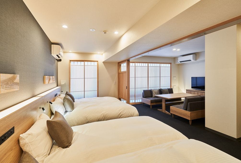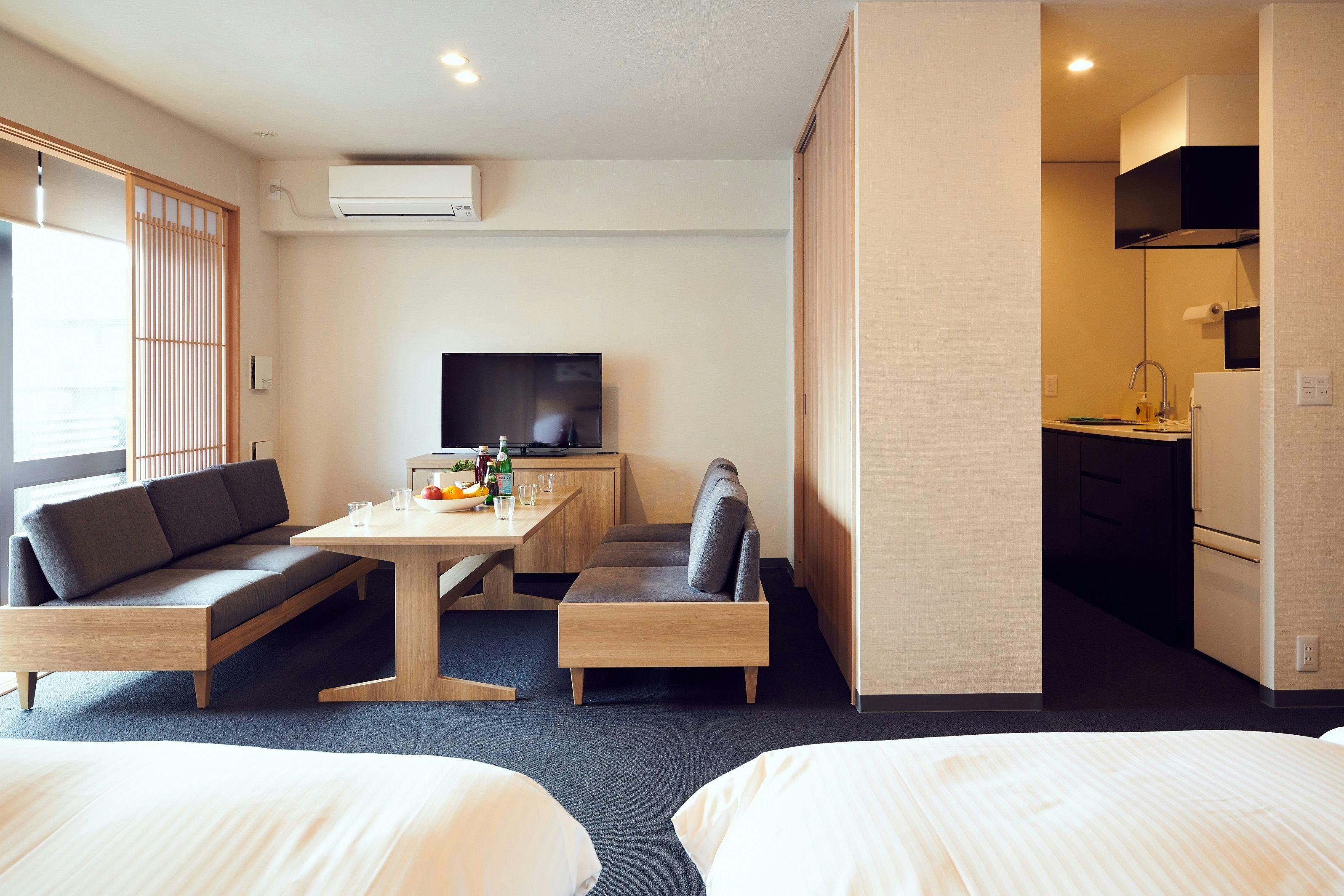 全室が35平米以上の広々ルーム!自炊可能なキッチンに加え、乾燥機能付き洗濯機や空気清浄機も完備したアパートメントホテルです。ファミリーやグループ旅行だけでなく長期滞在や受験勉強にも最適です!