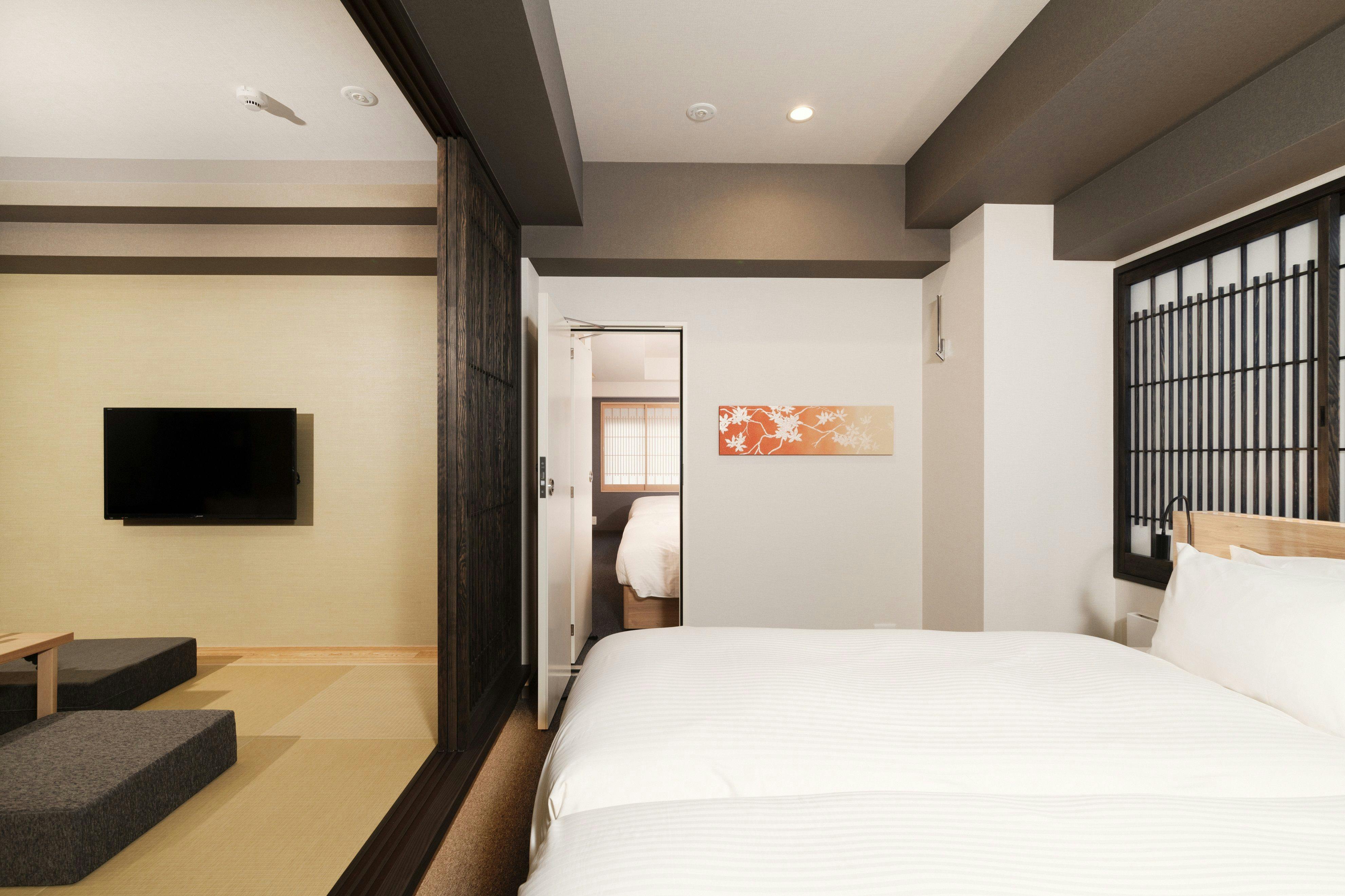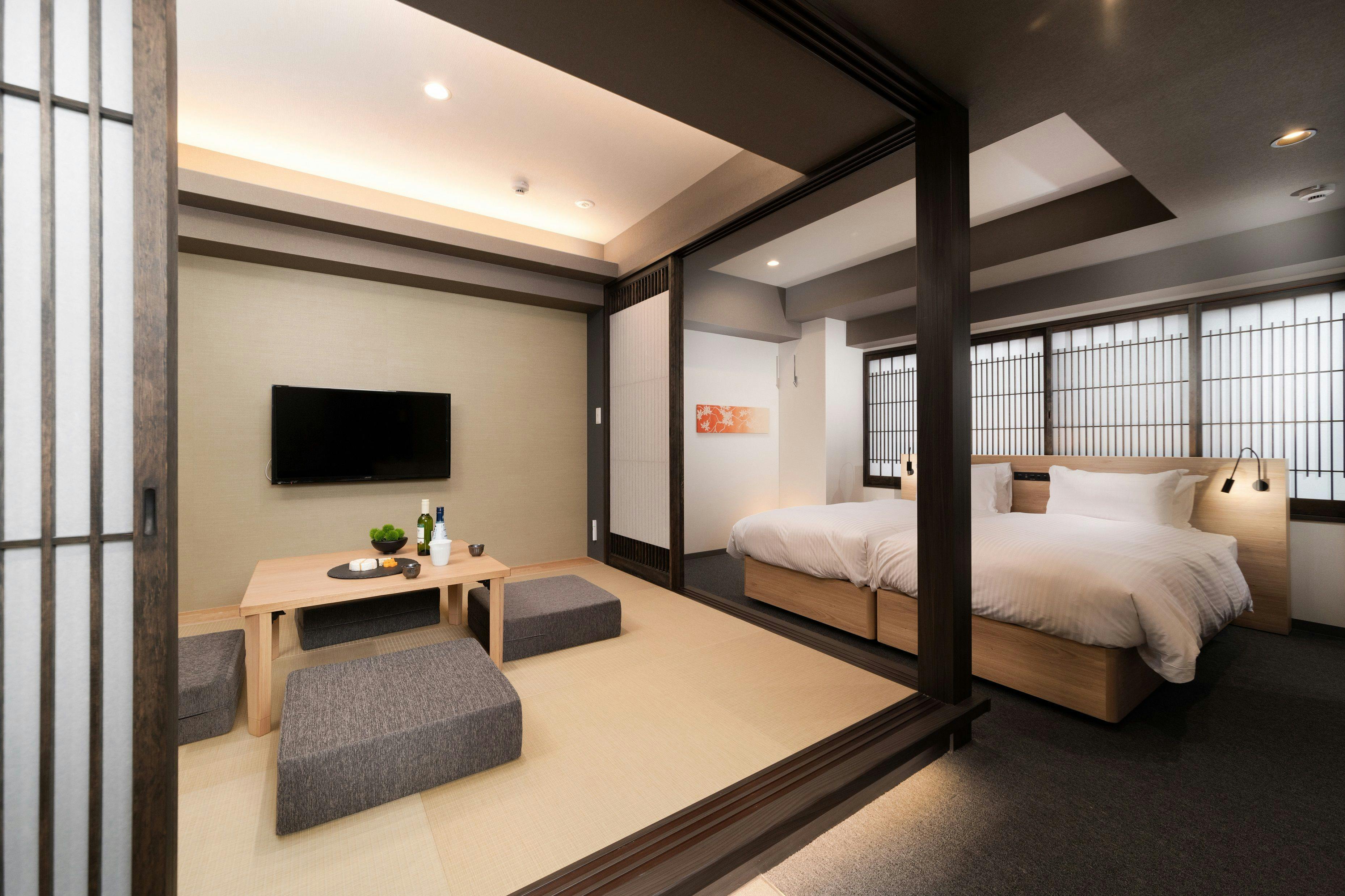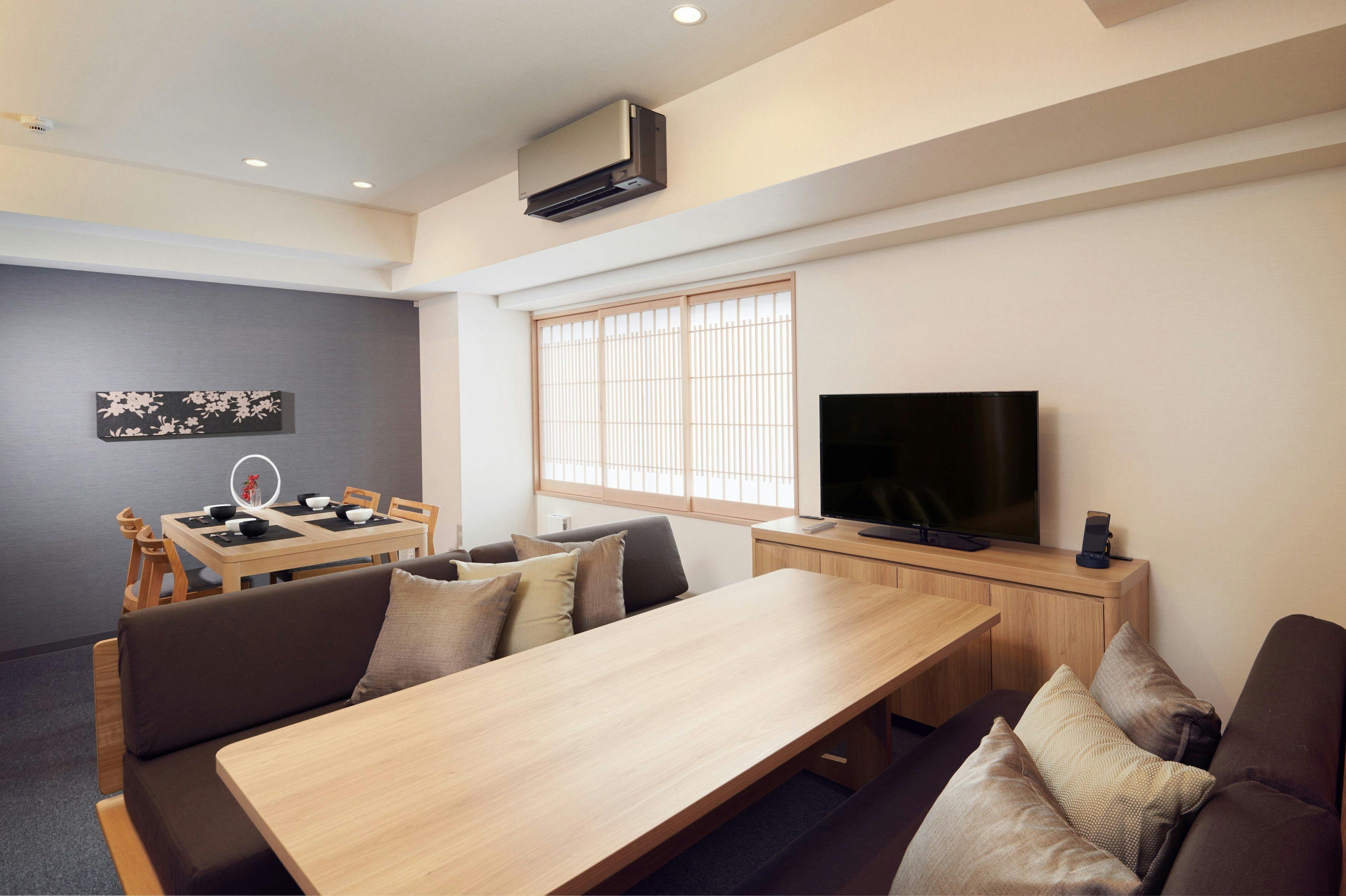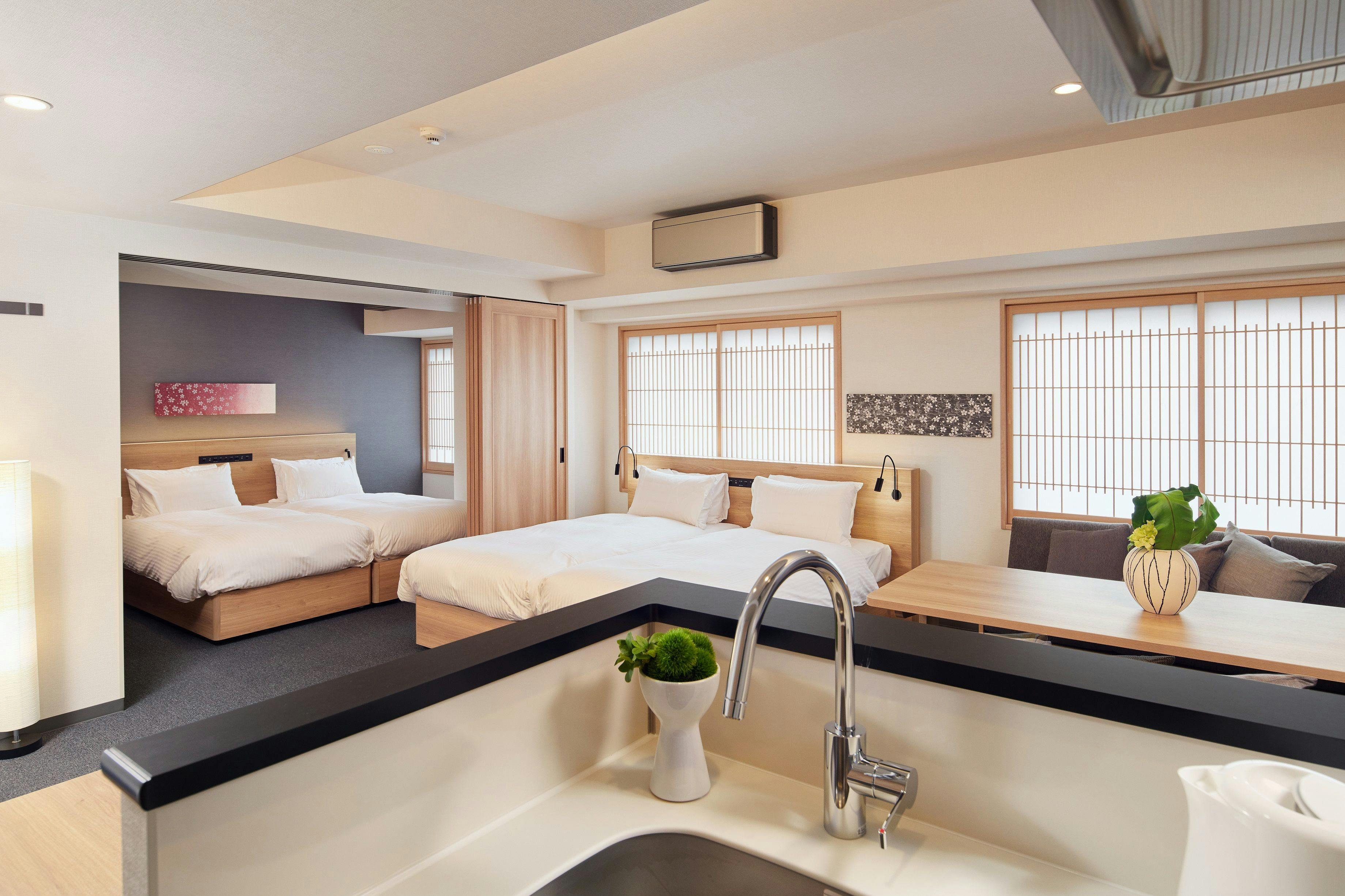 全室キッチン付で、40平米以上のゆったりとした和モダンの客室